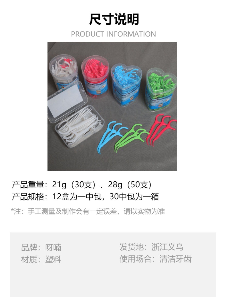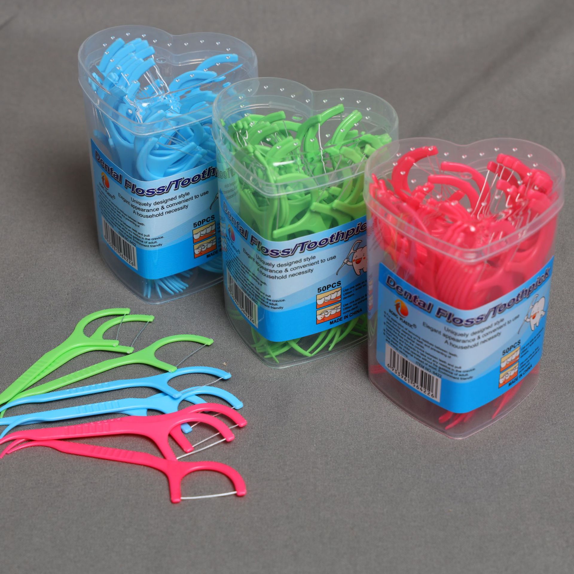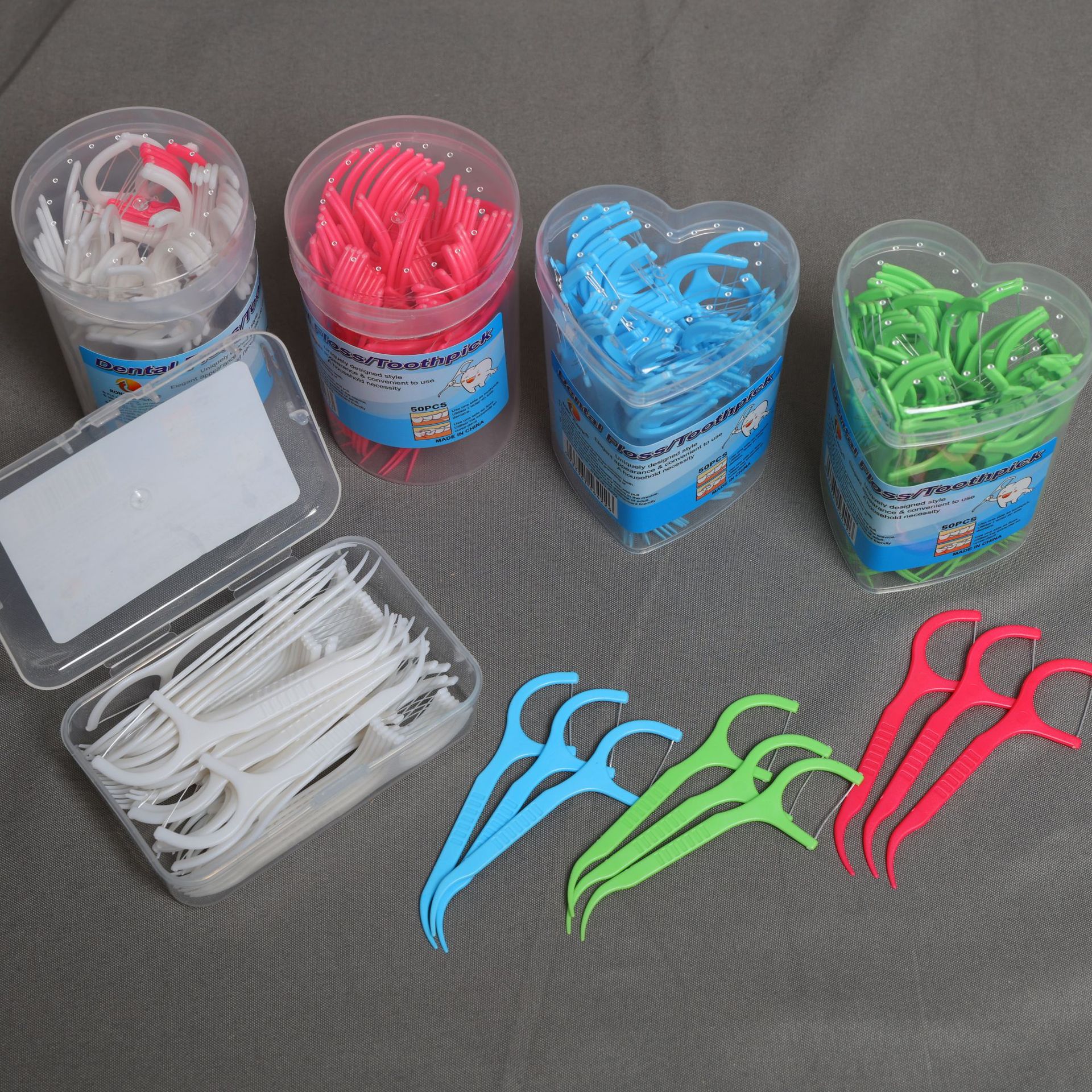 Children's Dental Floss 50 Pieces Boxed Colorfulful Ultra-Fine Arched Dental Floss Sticks Plastic Toothpicks Factory Direct Sales Spot Wholesale