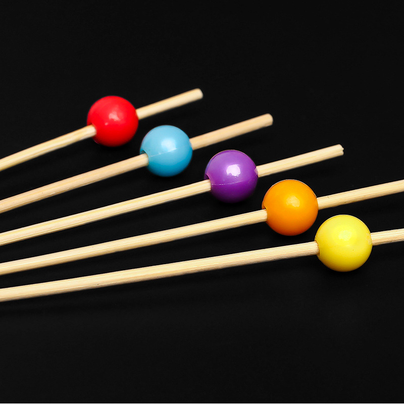Creative Handmade Art Bamboo Skewers Colorfulful Round Balls Fruit Skewers Cake Sushi Snack Bamboo Skewers 100 Pieces/Pack Wholesale