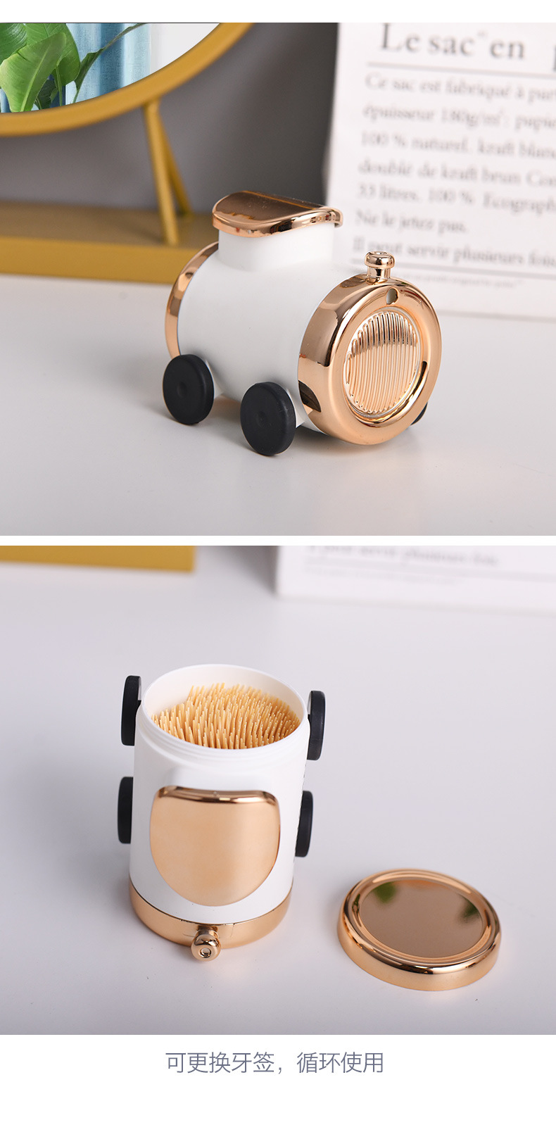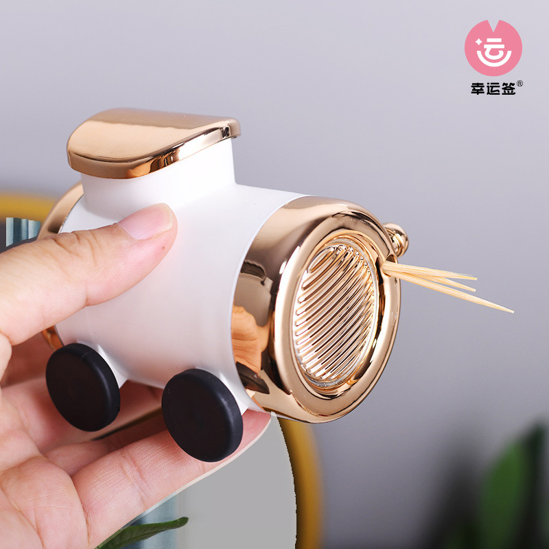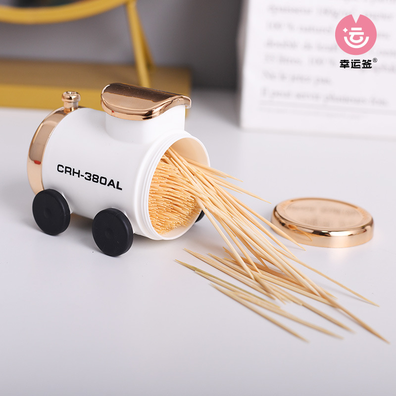 Creative Toothpick Holder Train Head Toothpick Storage Box Home Light Luxury Ornament Rotating Toothpick Dispenser Household Personalized Toothpick Jar