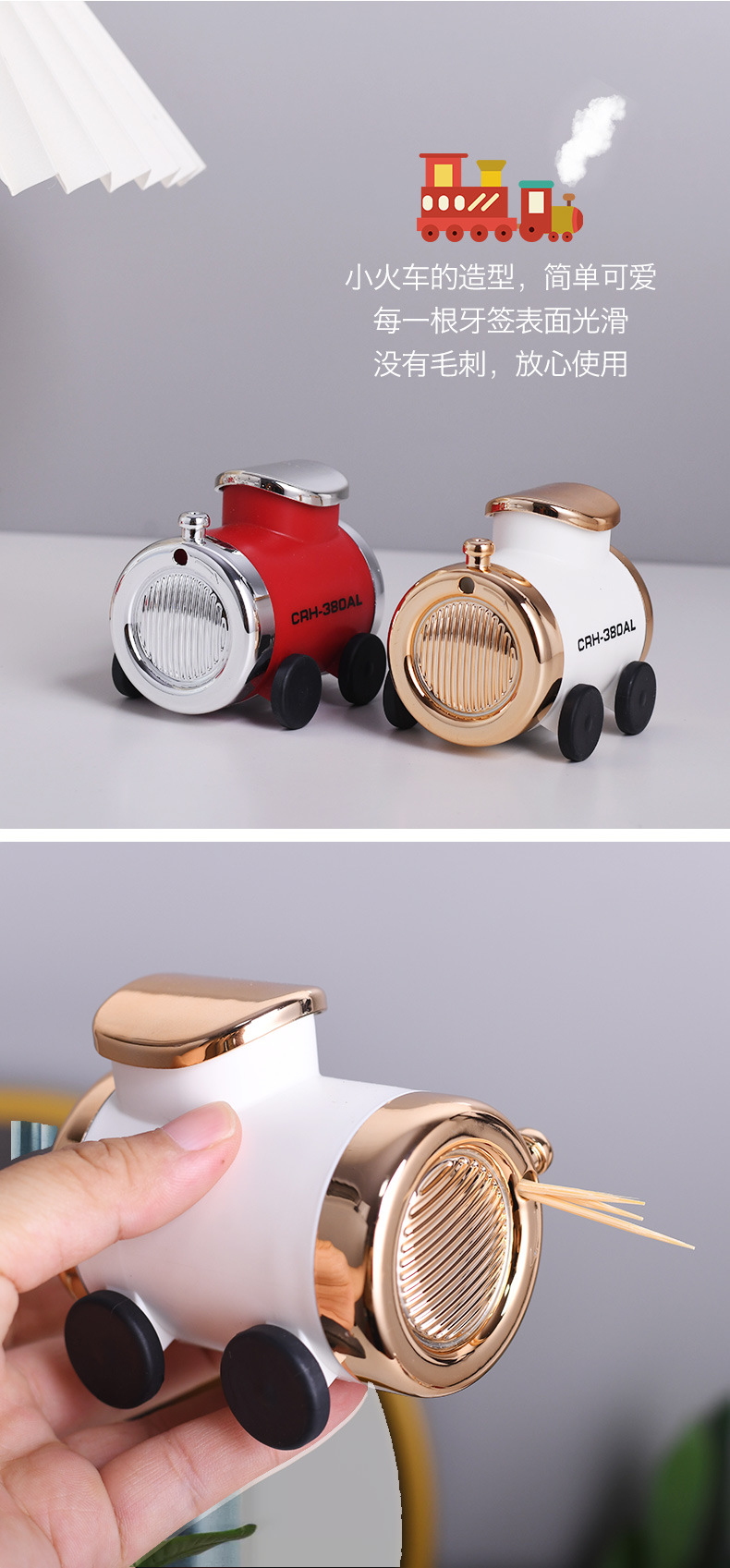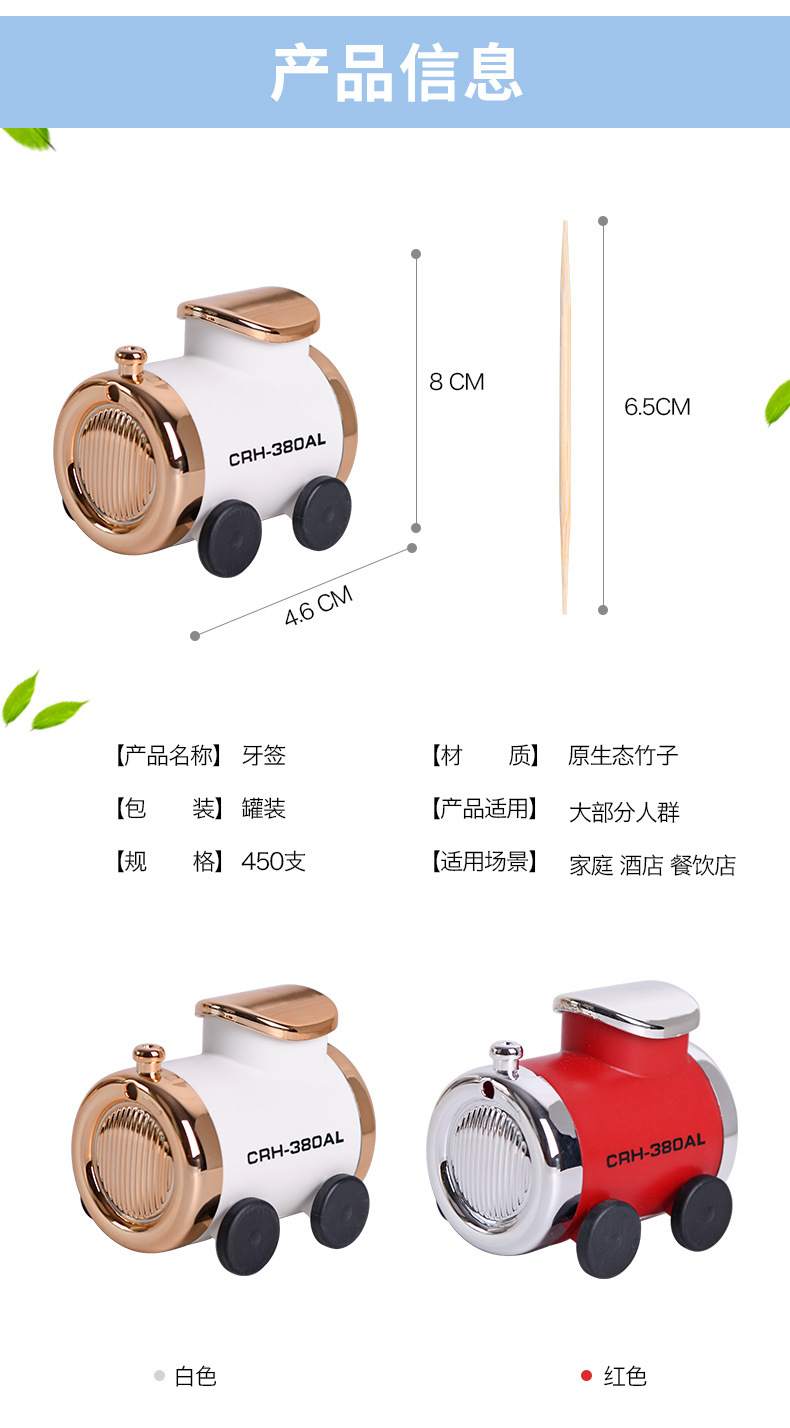 - Just countMore than 300 piecesSpecificationRed and silver train-shaped toothpick box (450 pieces), Platinum train-shaped toothpick box (450 pieces)