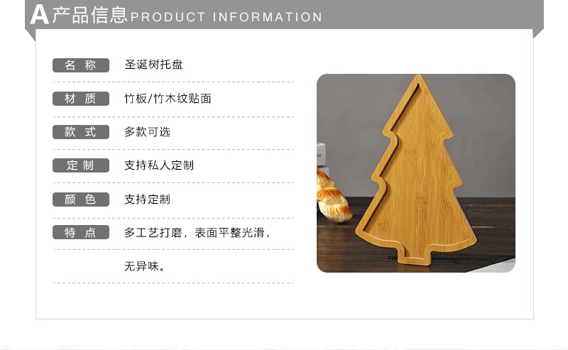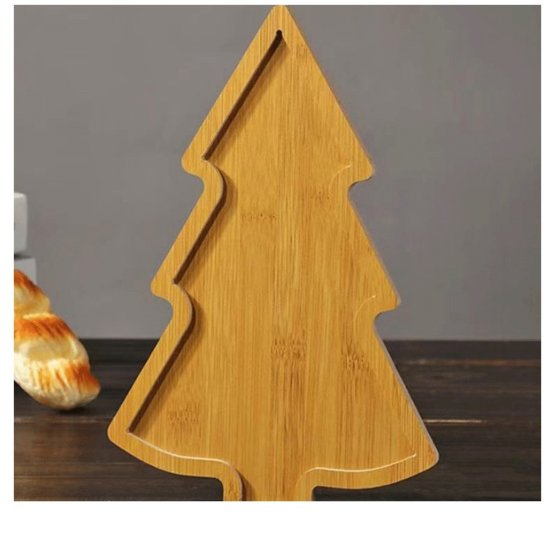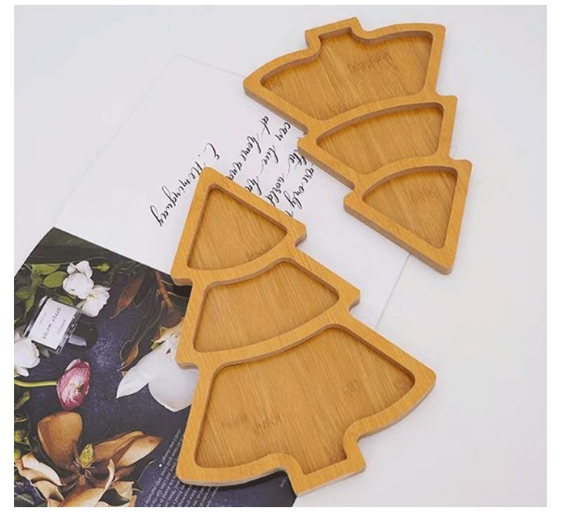 Cross-Border Bamboo Tray Christmas Tableware Dried Fruit Snacks Multi-Grids Wooden Tray Household Fruit Tray Restaurant Fast Food Tray