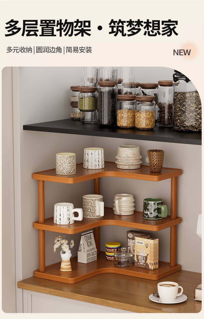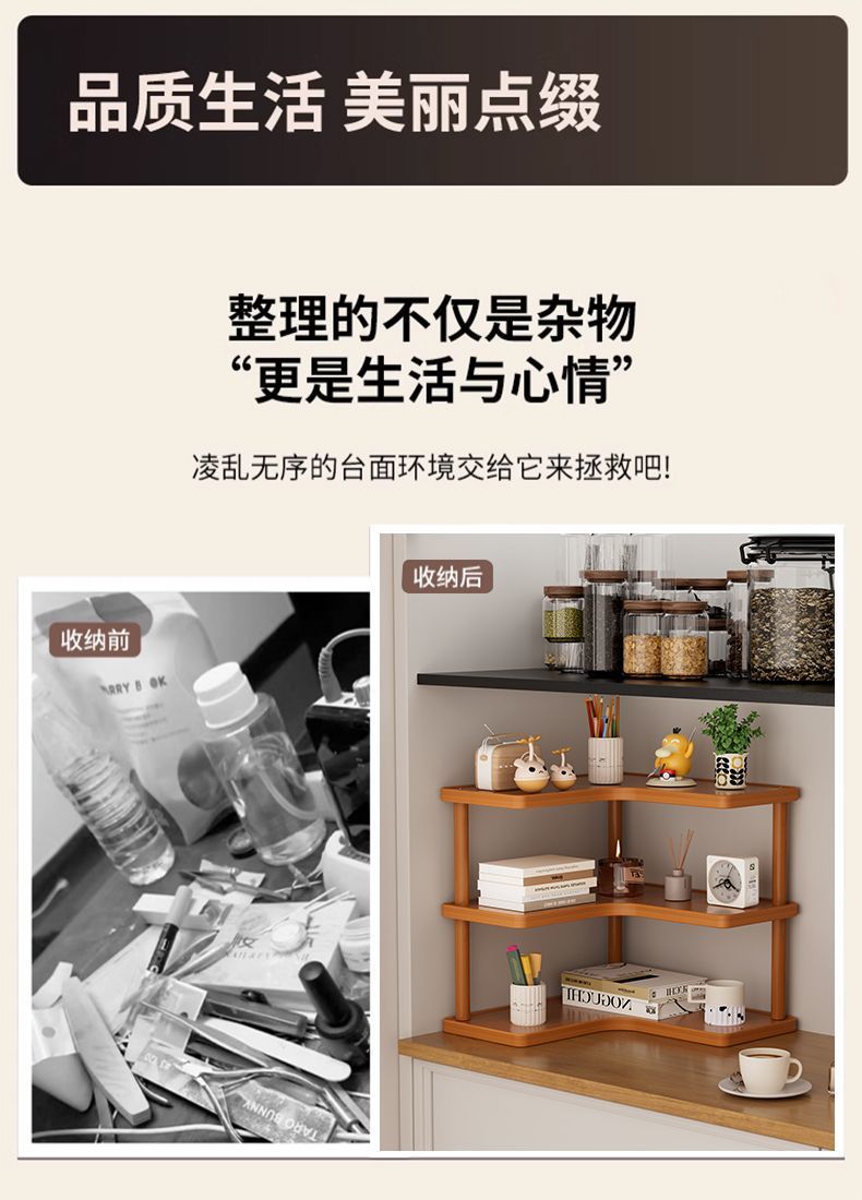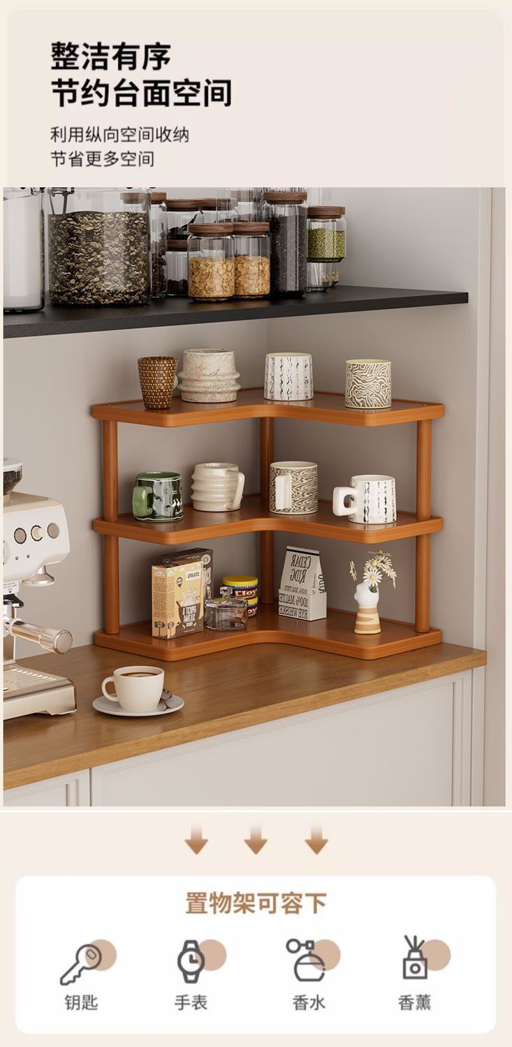 Color[upgraded model] two-story desktop corner storage rack, [upgraded model] three-layer desktop corner storage rack, [basic model] two-layer desktop right-angle storage rackSizeThe desktop is no longer cluttered [tidy desktop + multi-purpose rack]