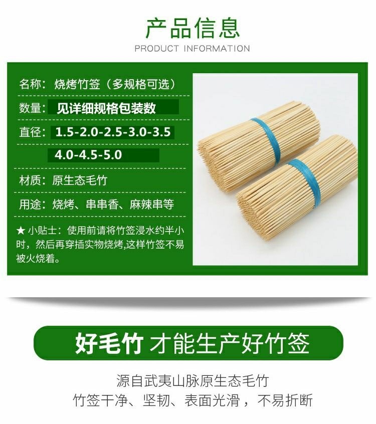Disposable Bamboo Skewers for Barbecue, Sausage, Lamb Skewers, Candied Haws, Bouquets, Fried Skewers, and Chicken Steak, with Free Shipping