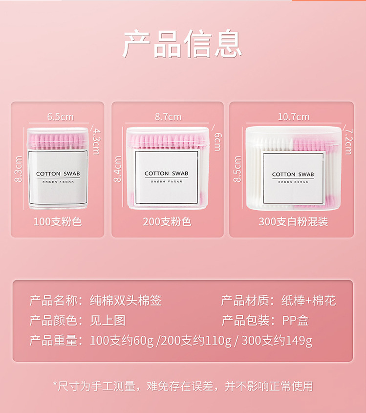 Disposable Cotton Swab Household Cosmetic Cotton Stick Boxed Round Head Pointed Double Head Cleaning Flexible Ear-out Cotton Swab
