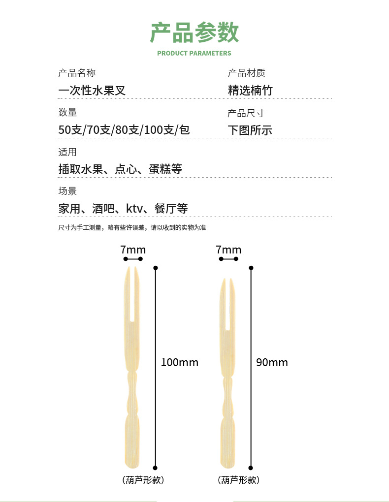 - SpecificationBamboo fruit forks 100 count gourd shape 88mm, Bamboo fruit forks 100 count gourd shape 100mm, Bamboo fruit fork 50 gourd-shaped 88mmPrint logoNo