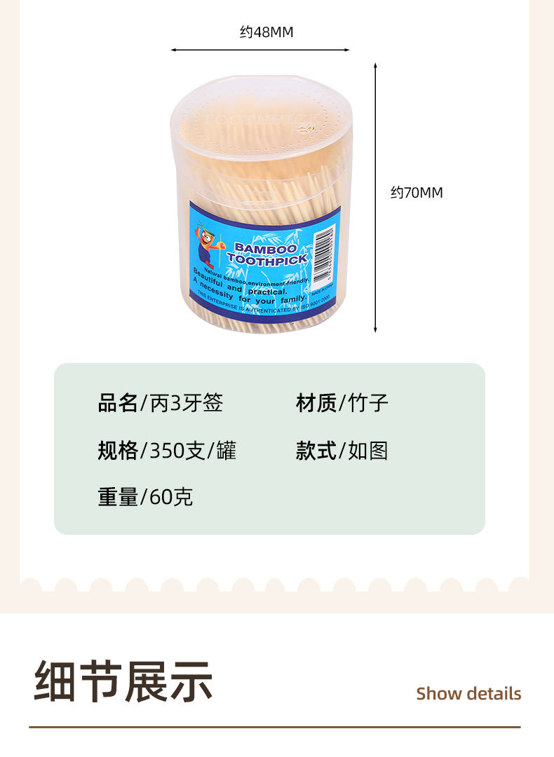 Disposable Double Head Bamboo Fine Toothpick Home Restaurant Hotel Portable Bottled Toothpick Toothpick Wholesale
