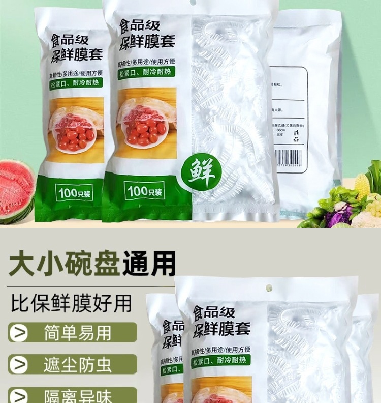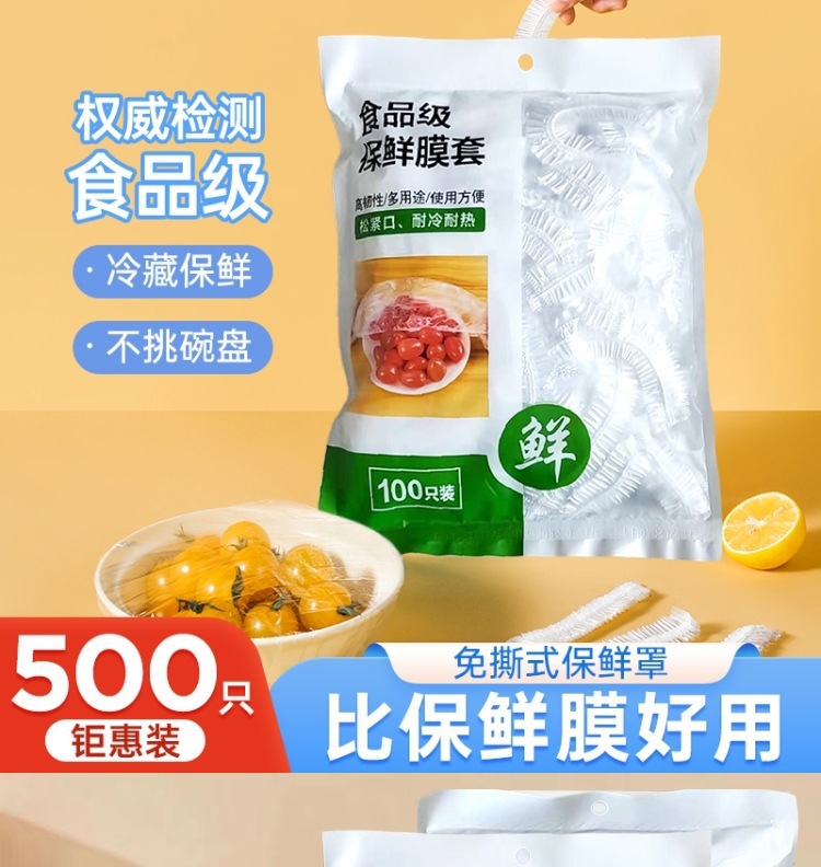 Disposable Fresh-Keeping Bag Food-Grade Pe Plastic Wrap Bowl Cover Household Economical Plastic Wrap Cover Elastic Mouth Large Bag