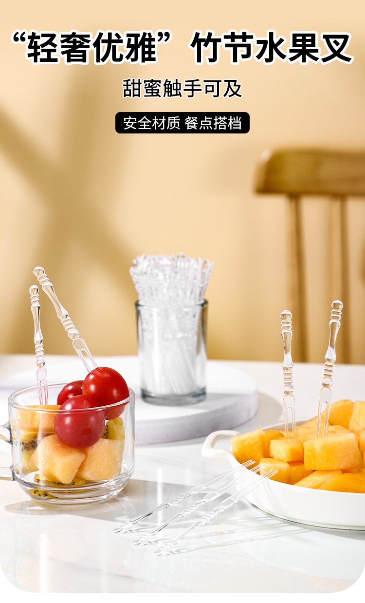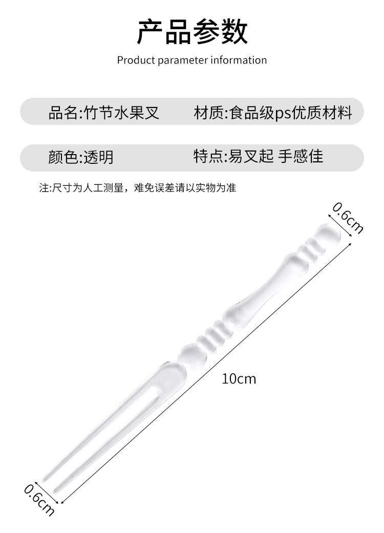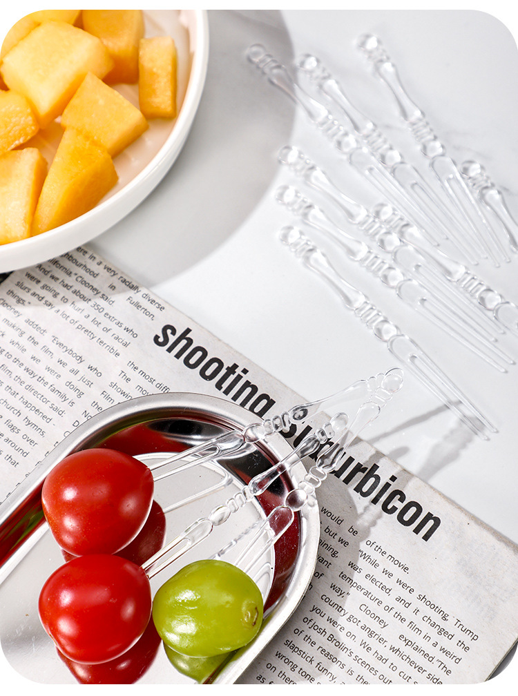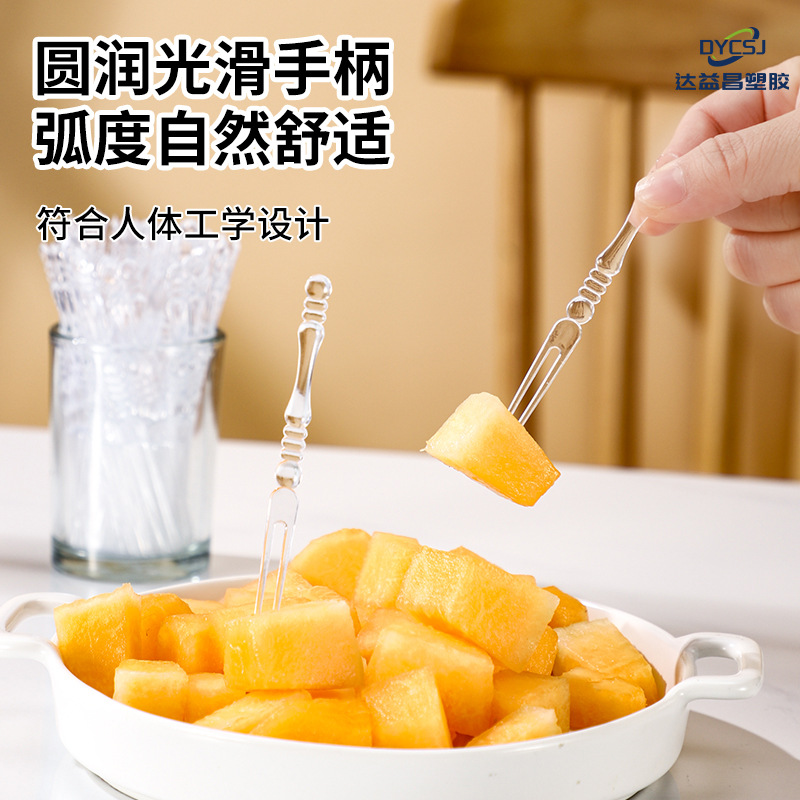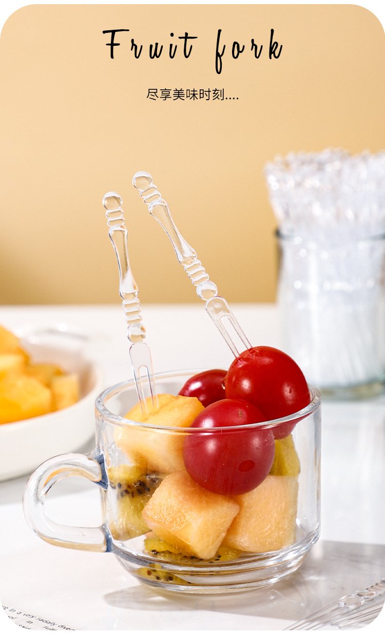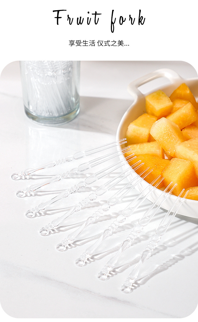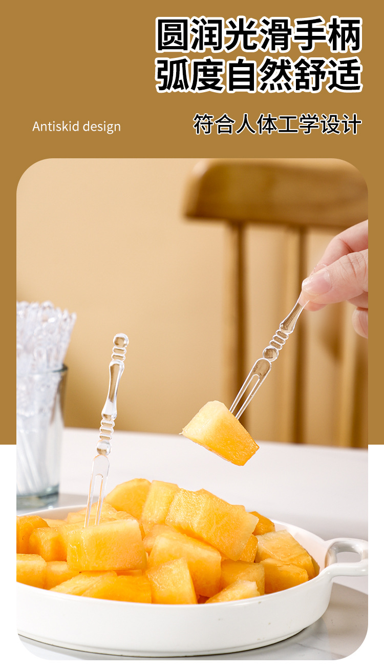 Disposable fruit fork thickened hardened food grade plastic transparent fork KTV commercial moon cake stick