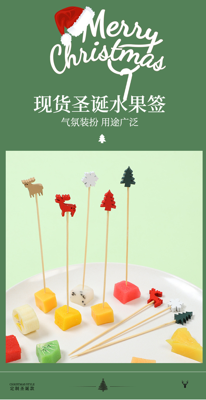 Disposable fruit stick Christmas bamboo stick creative craft cocktail cold dish fruit plate decorative platter art sign free shipping