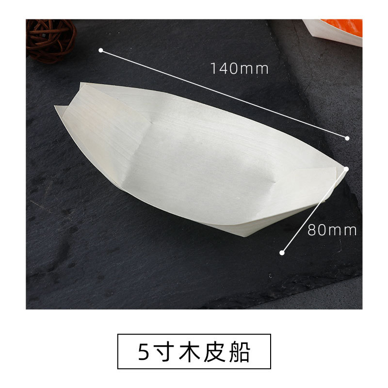 Disposable Paper Boat Veneer Boat Sushi Fries Chicken Steak Dessert Packaging Box Wooden Boat Boat-Shaped Snack Packaging Box