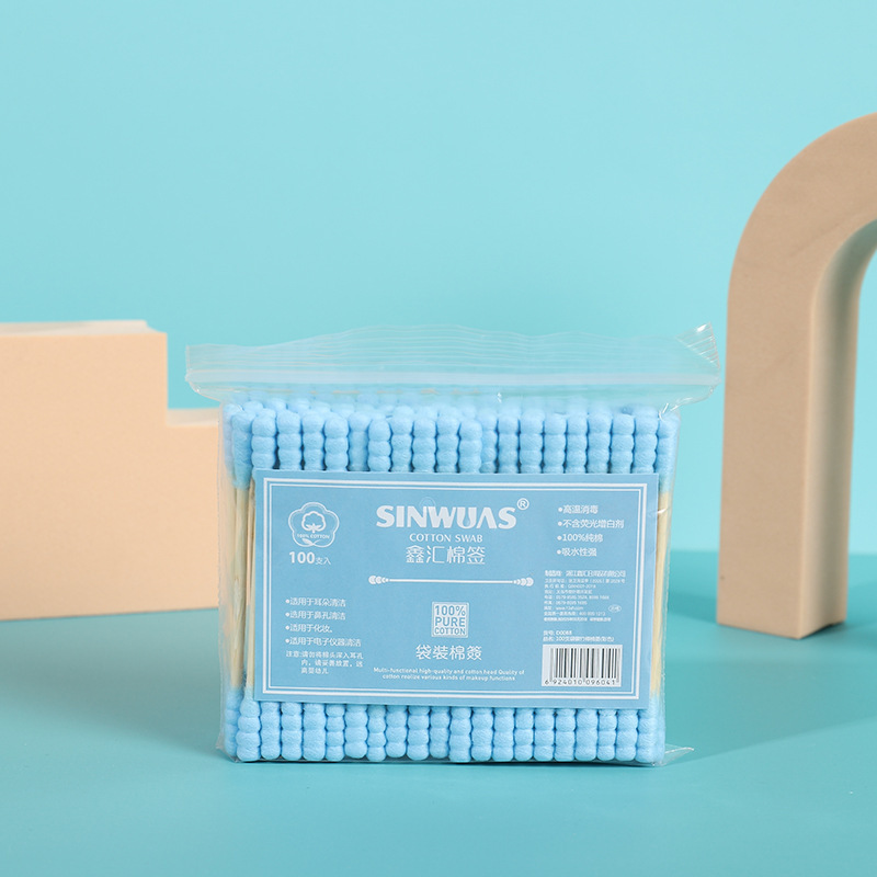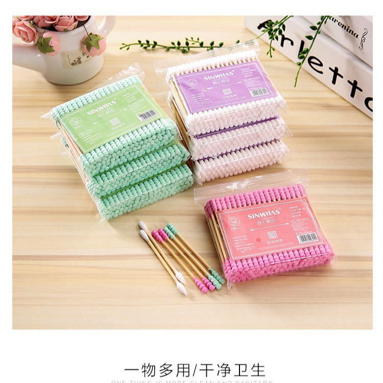 Double-headed cotton swab ear-pulling cotton swab cotton swab multi-purpose makeup cotton swab makeup remover cotton swab 100