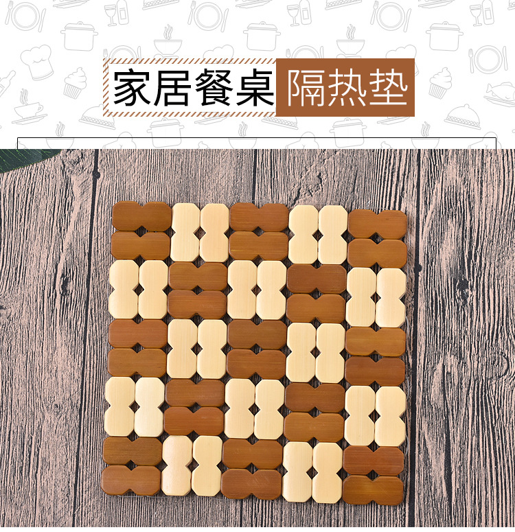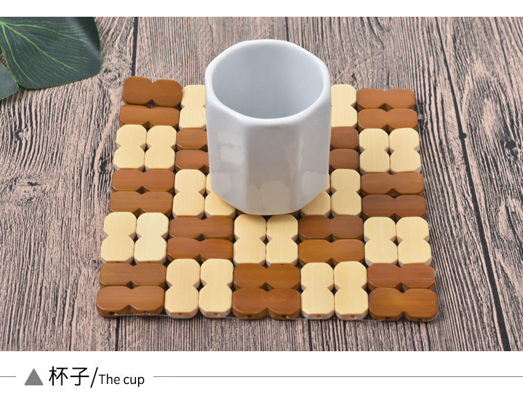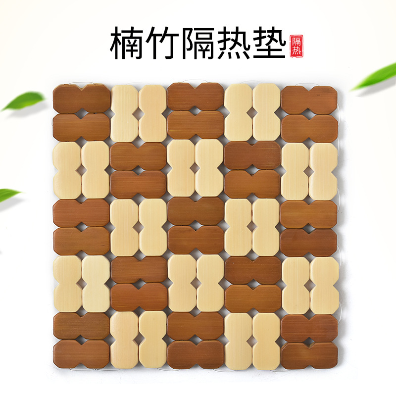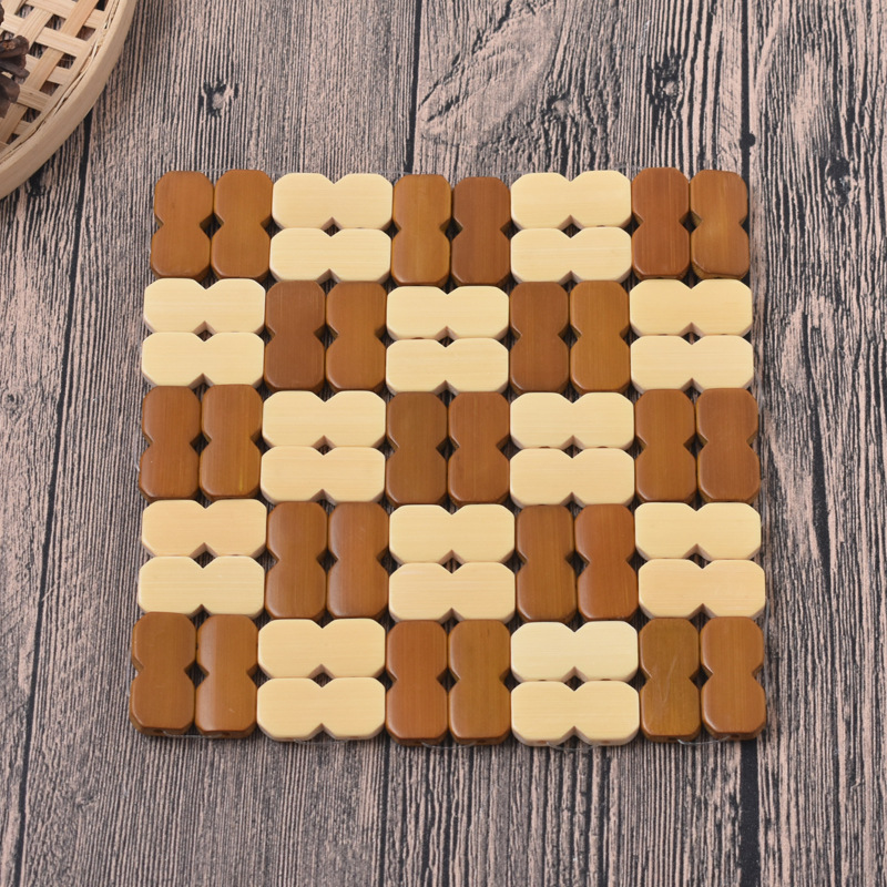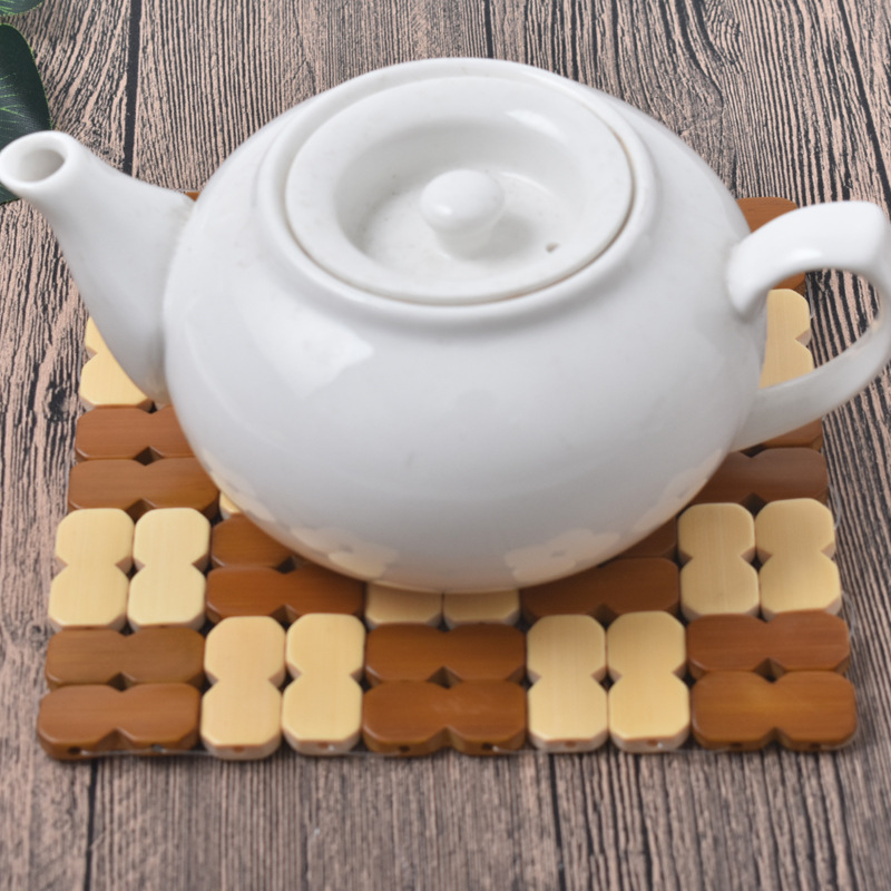 Factory Direct Supply Bamboo Dining Table Heat Insulation Mat Heat-Resistant Anti-Scalding Placemat 16cm Square Figure-Eight Bamboo Wooden Bowl Mat Coaster