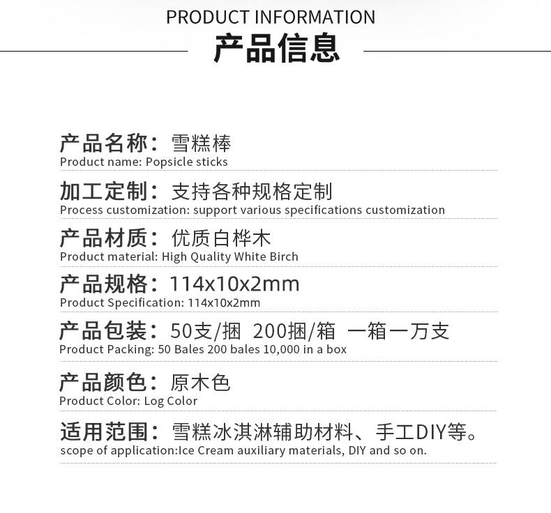 Factory wholesale ice cream stick disposable handmade DIY ice cream stick food grade Beech popsicle stick stick wood chips
