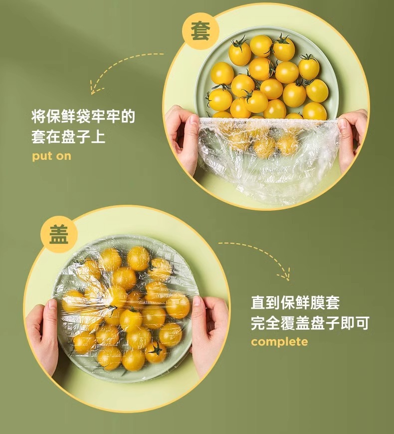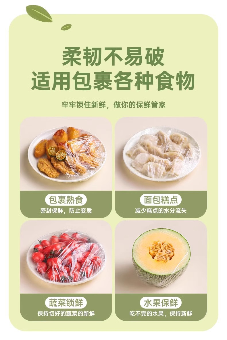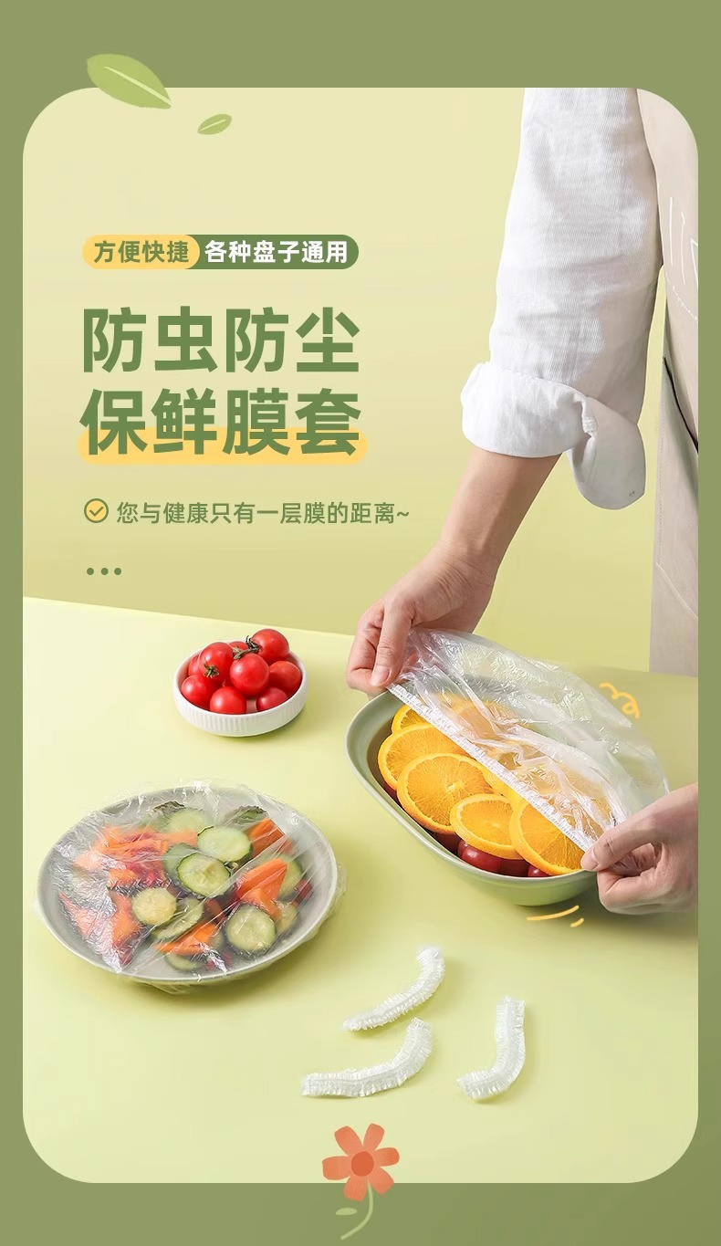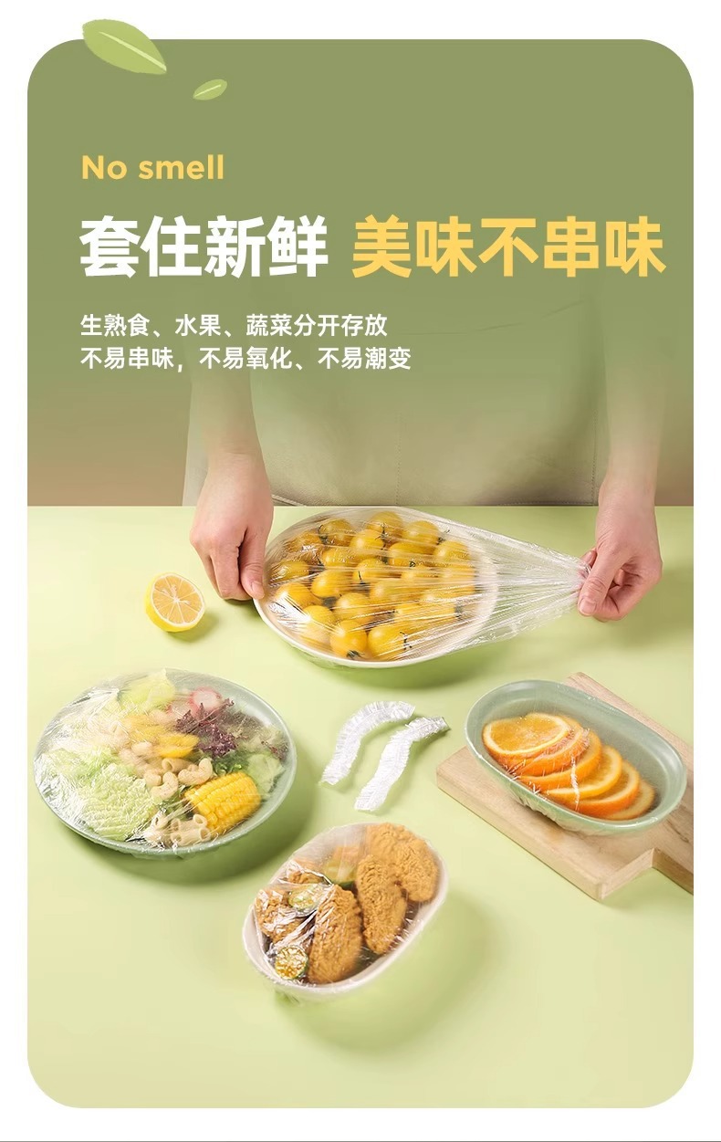 Food-Grade Cling Film Cover Antibacterial Disposable Fresh-Keeping Bag with Elastic Household Leftover Condom Bowl and Plate Kitchen