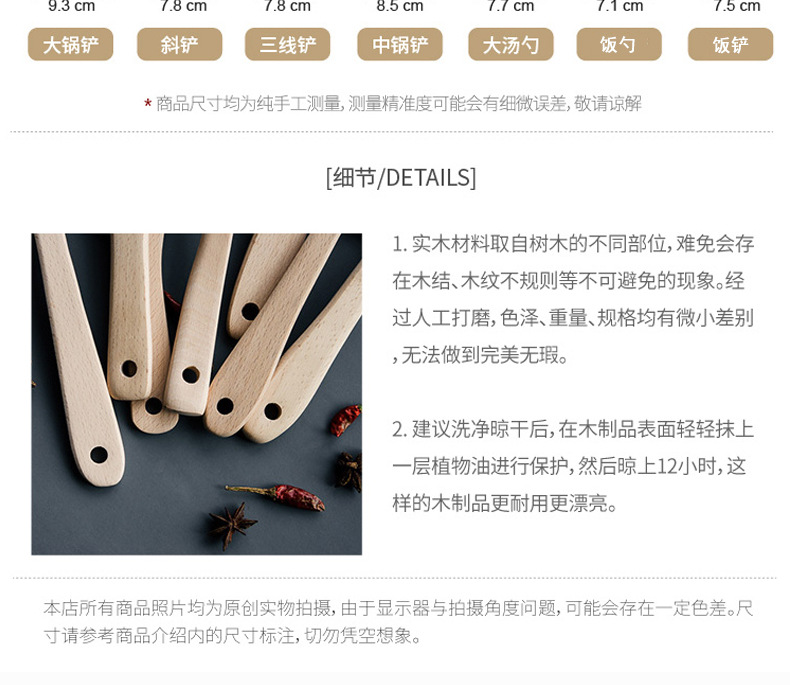 - Whether there is a patentNoneDimensionsBeech round rice shovel, Beech flat rice shovel, Beech round rice spoon, Beech large inclined shovel, Beech three-line shovel, Beech large spatula, Beech medium curved spoon, Beech straight handle spoon