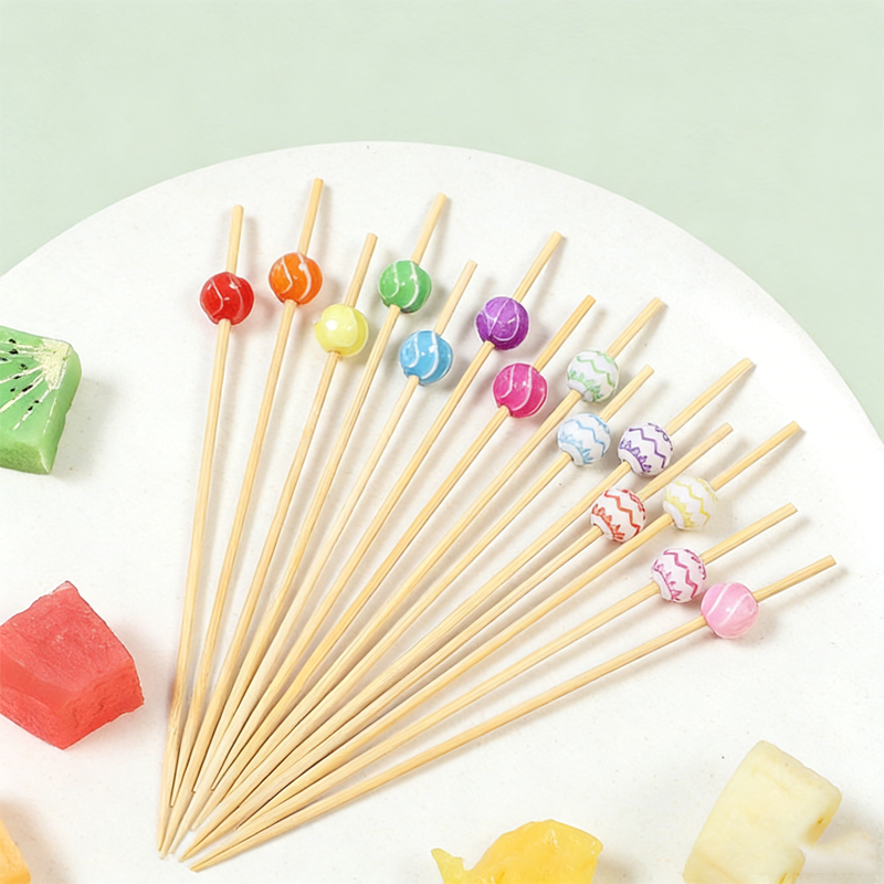 Fruit stick colorful spot ball creative cocktail stick snack stick KTV art string stick bamboo stick 100 pcs/bag