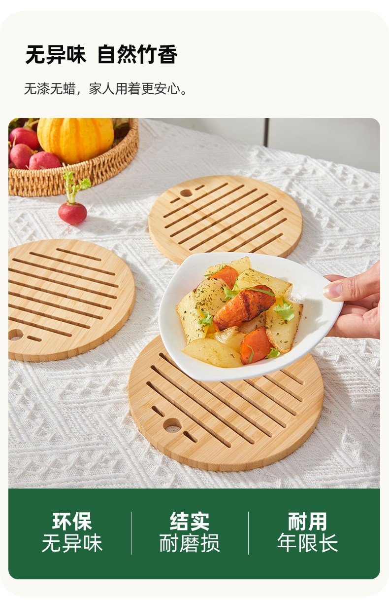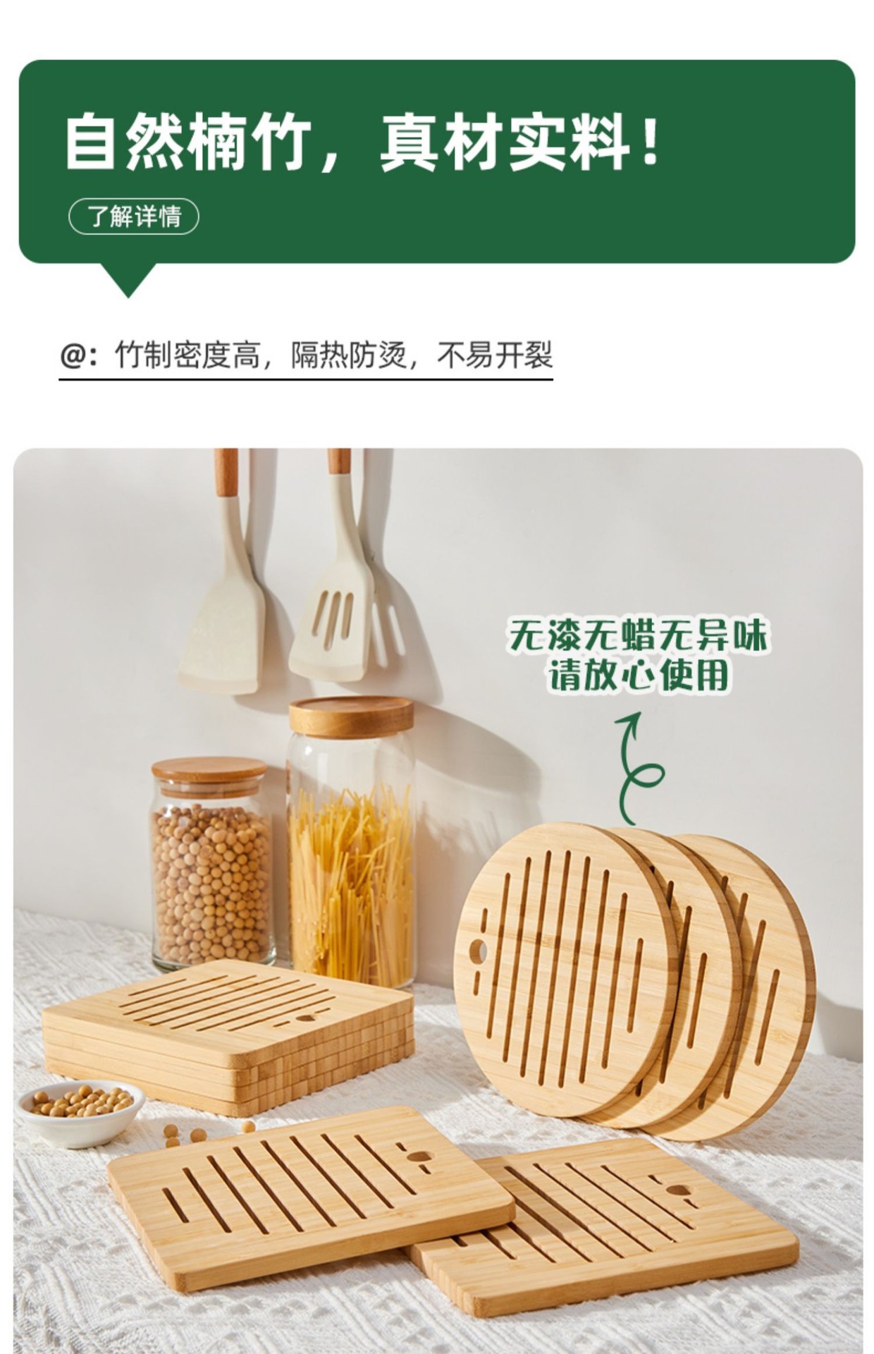 Heat Insulation Mat Dining Table Mat Pot Bottom High Temperature Resistant Bamboo Mat Household Bamboo Wood Heat-proof Heat-resistant Bowl Mat Hot-proof Coaster Plate Mat