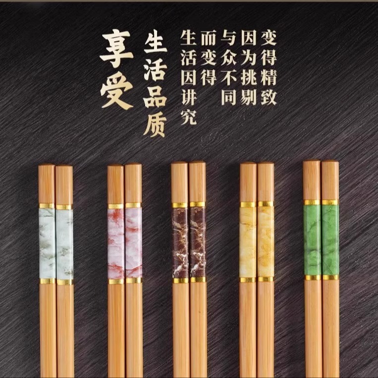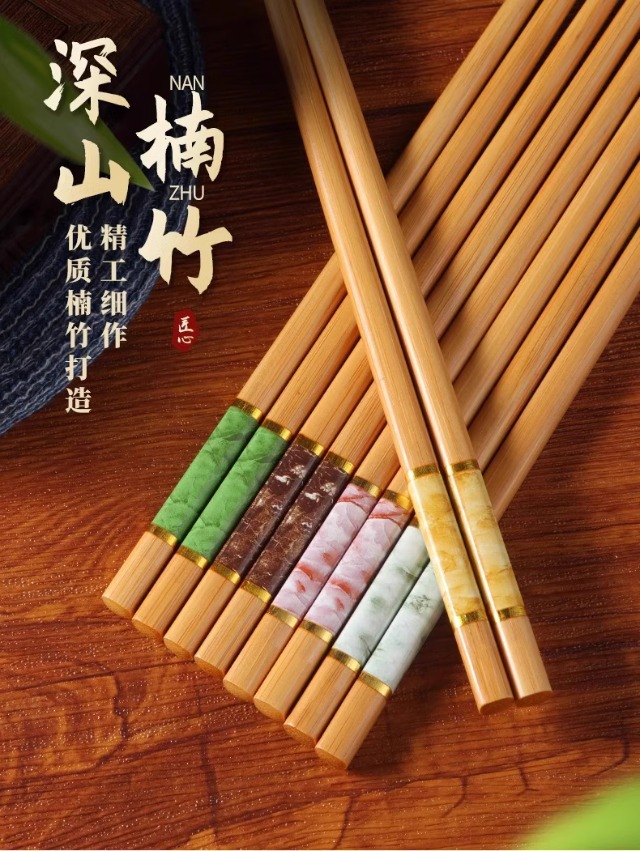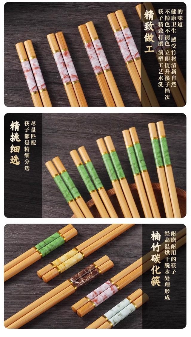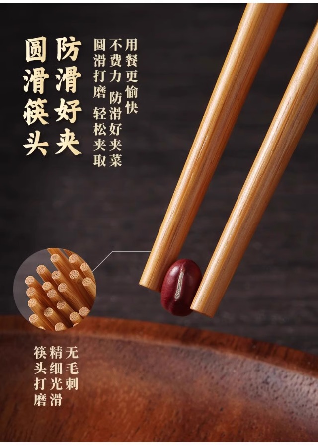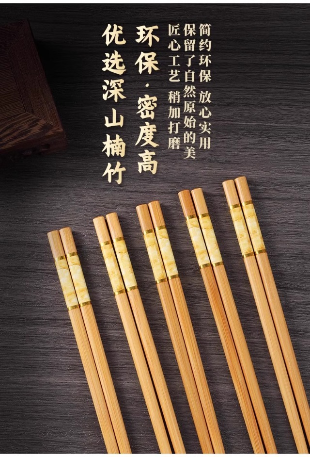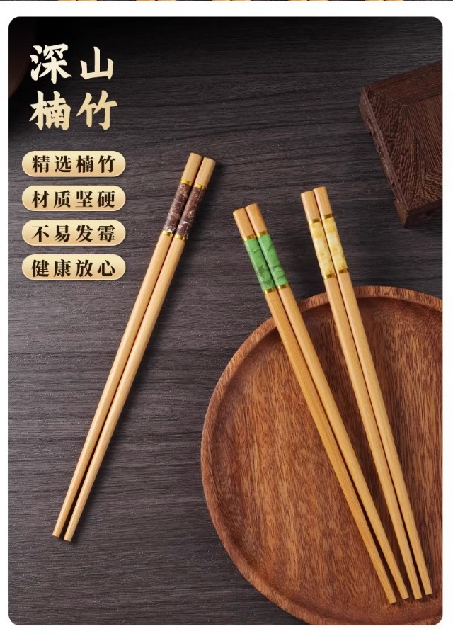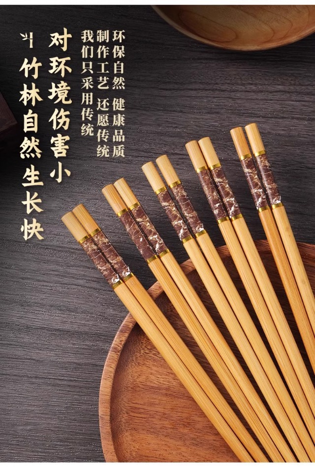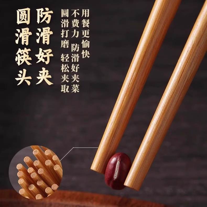 High-End Natural Bamboo Chopsticks, Pure Natural Household Anti-Mildew and High-Temperature Resistant Extended Hot Pot Chopsticks, Fried Fast Fried Wood
