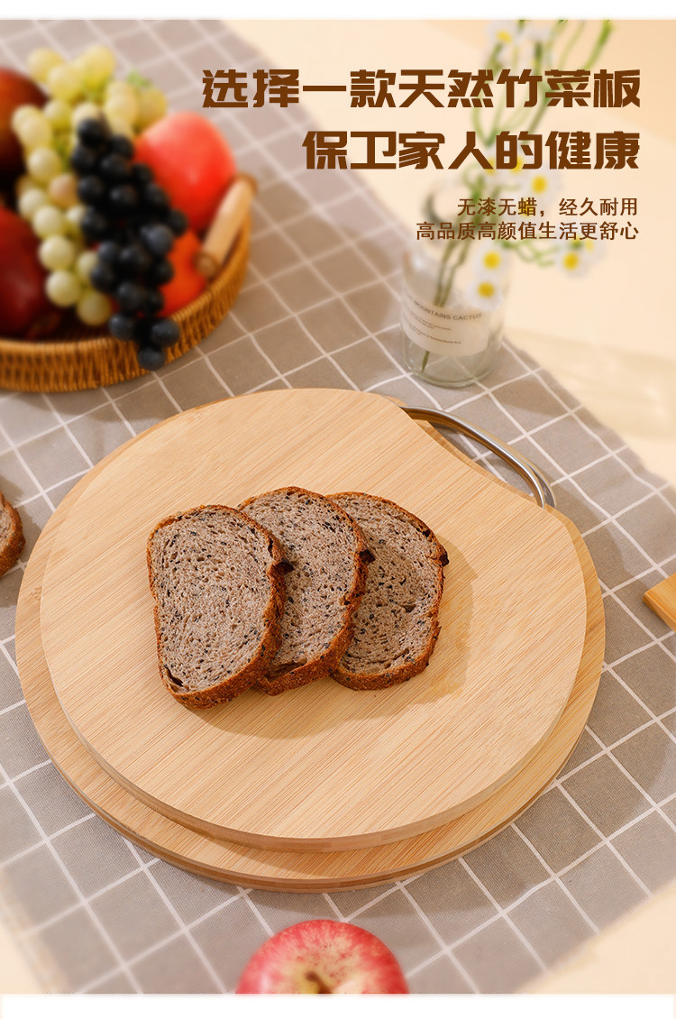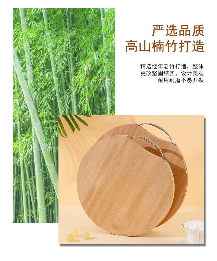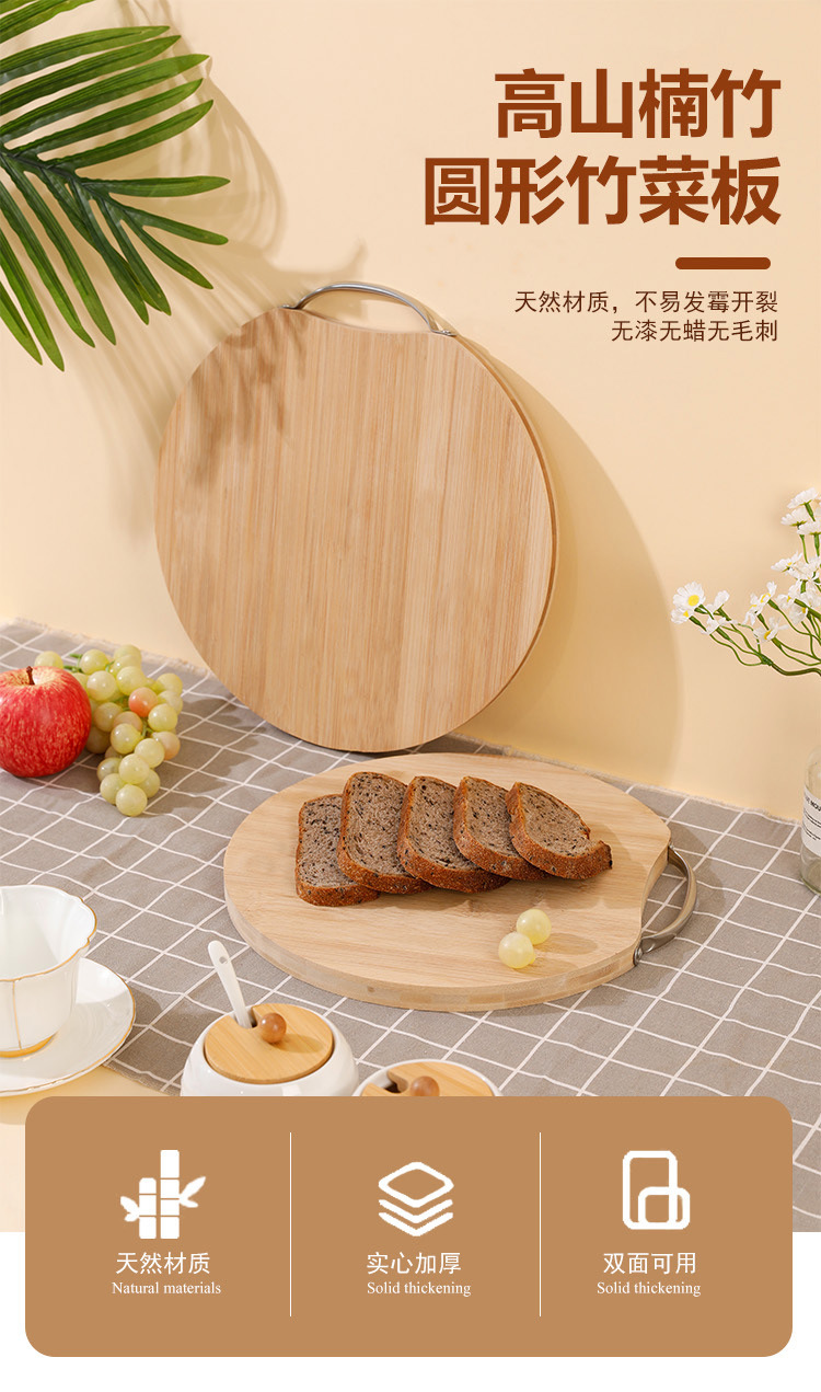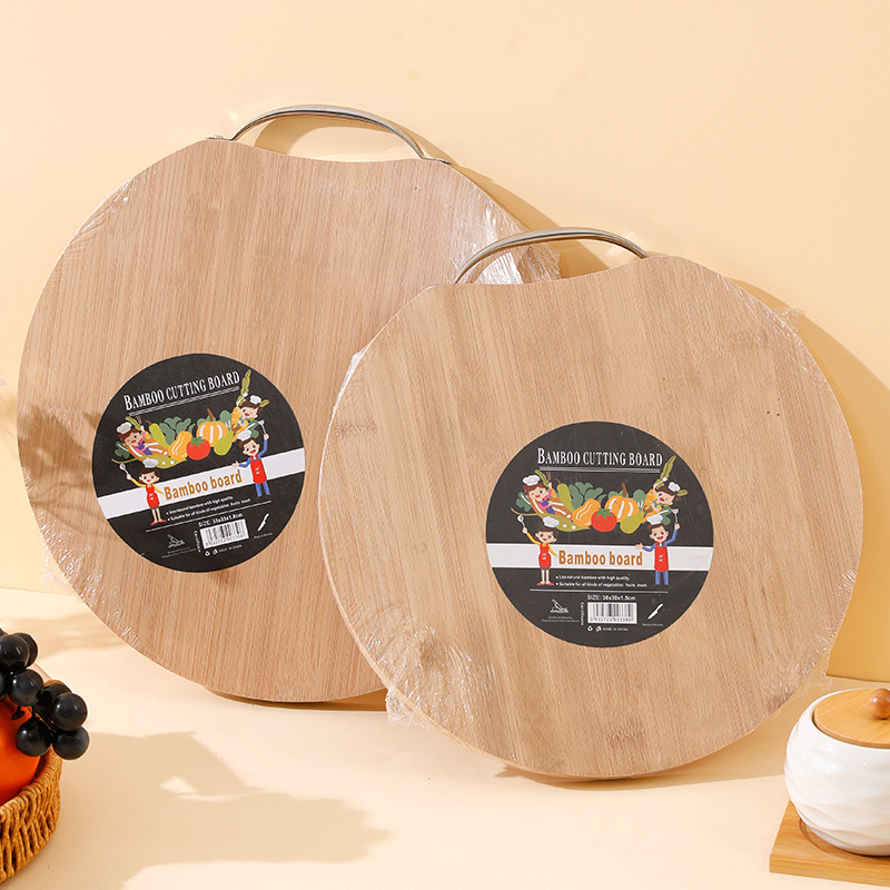 Bamboo Cutting Board Rolling Dough Bamboo Double-Sided Round Carbonized Cutting Board Kitchen Cutting Board Durable Environmentally Friendly Bamboo Board