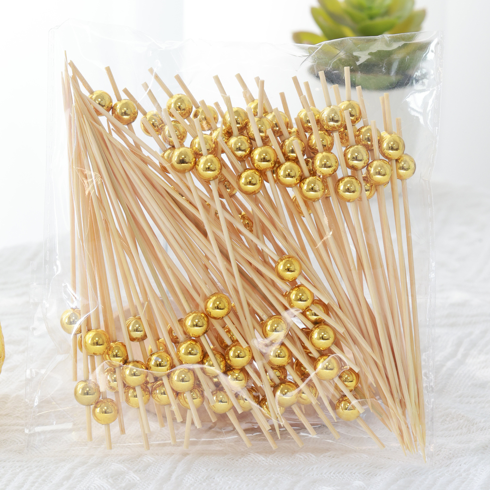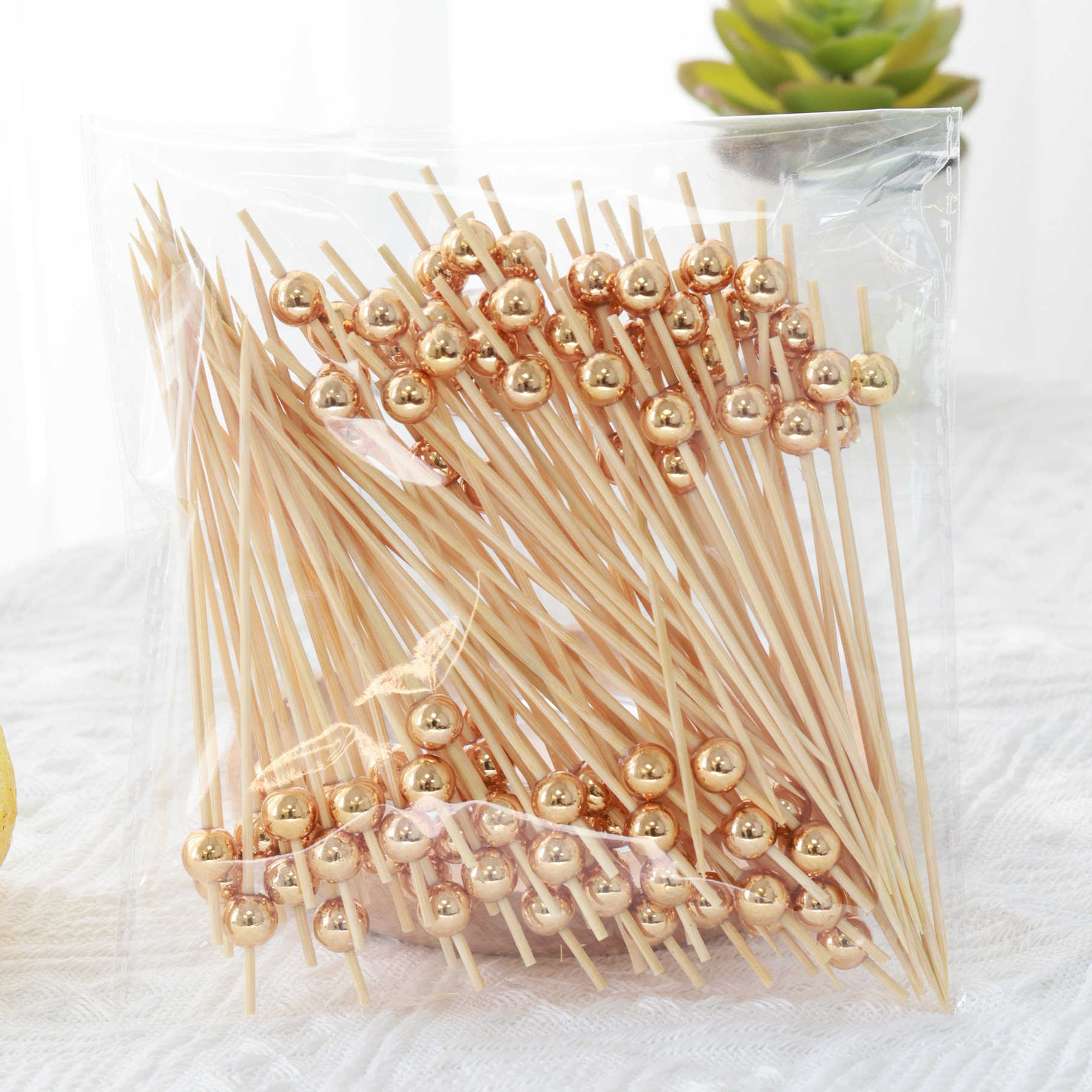 in stock 100 12cm disposable bamboo stick fruit fork pearl sign ktv bar fruit sign dessert snack bamboo stick