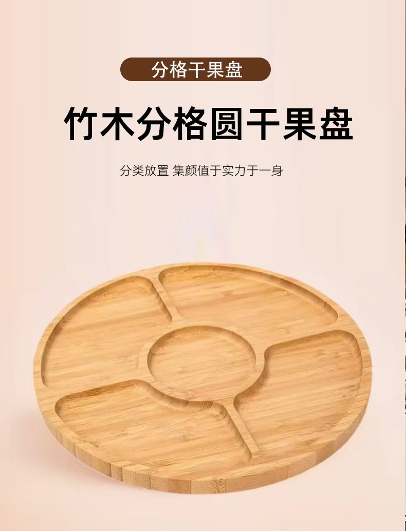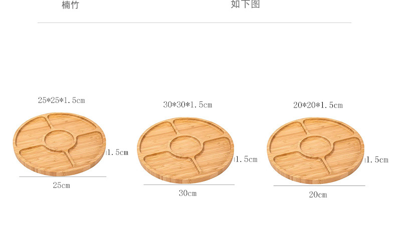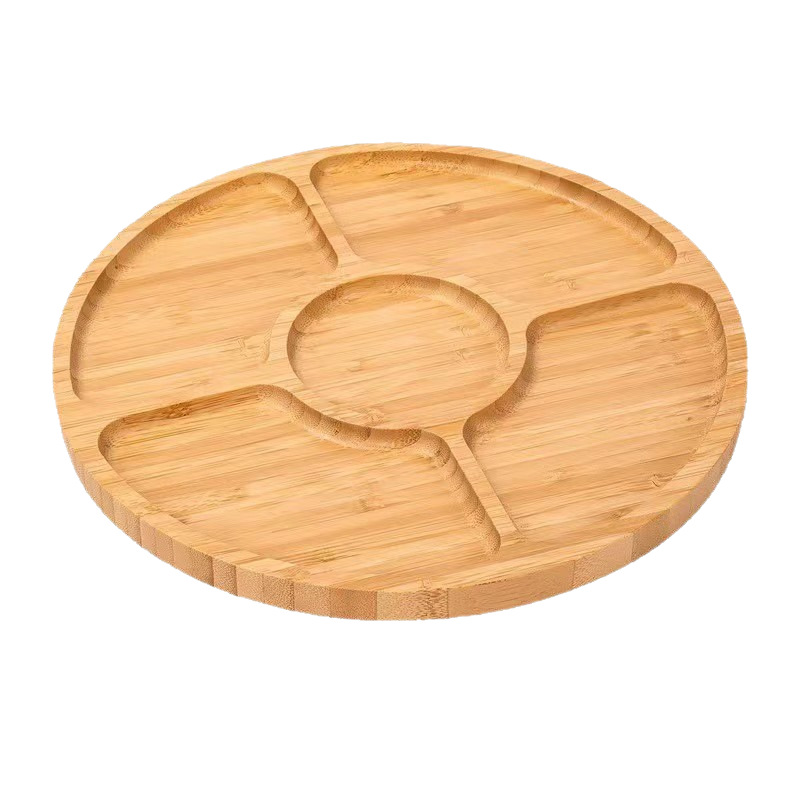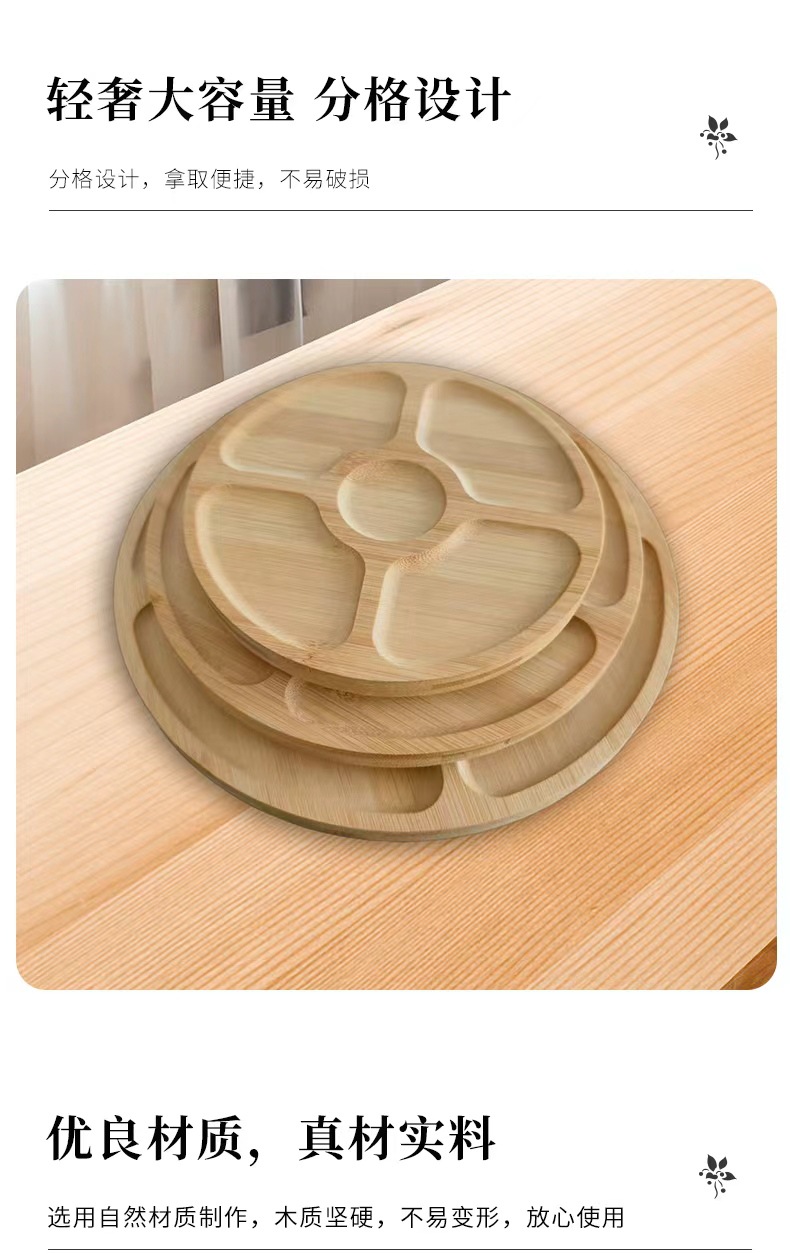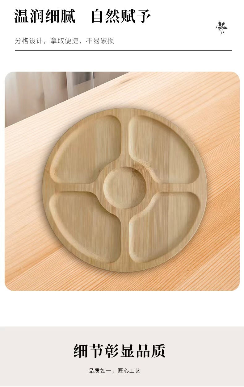 In-Stock Thickened Children's Safety Bamboo Round Compartment Tray Wooden Tableware Snack Tea Break Tray