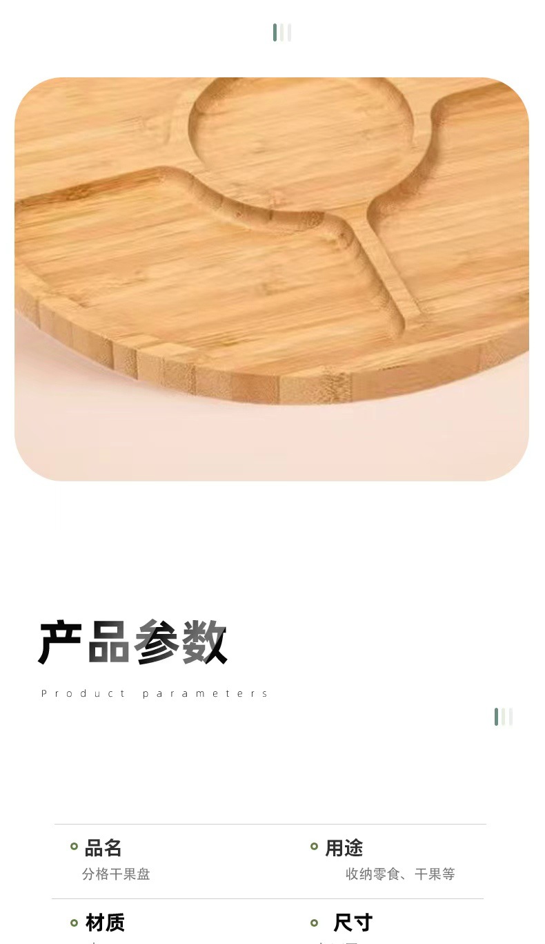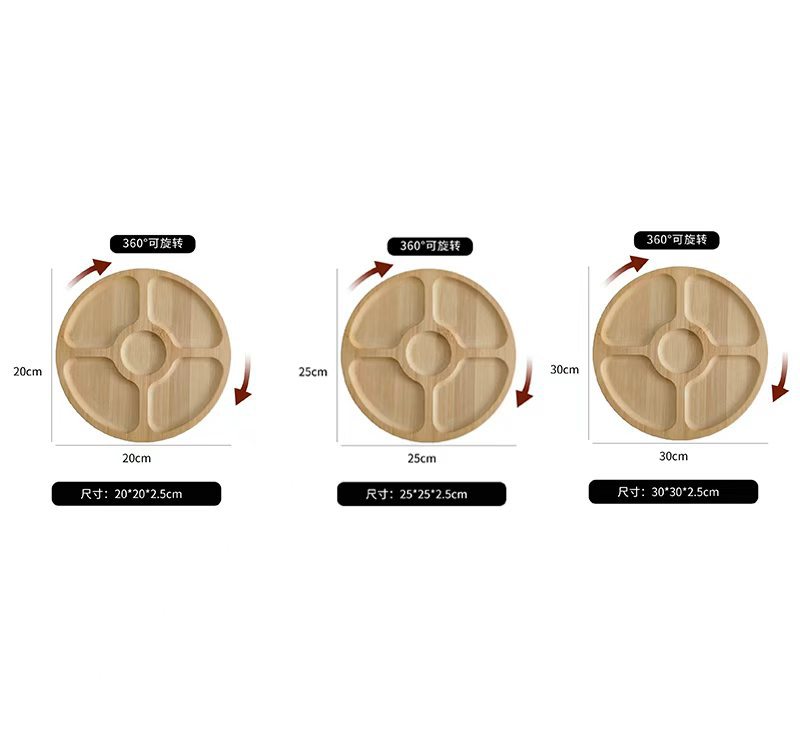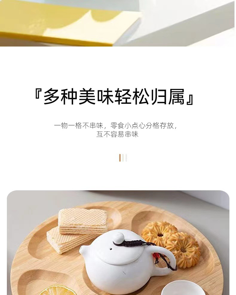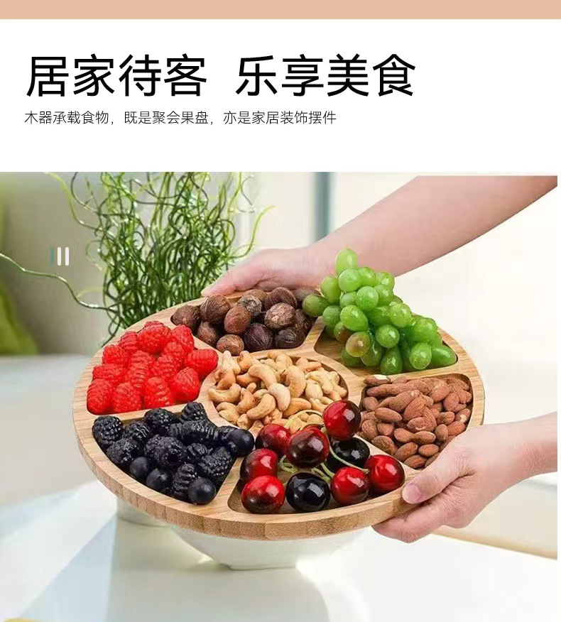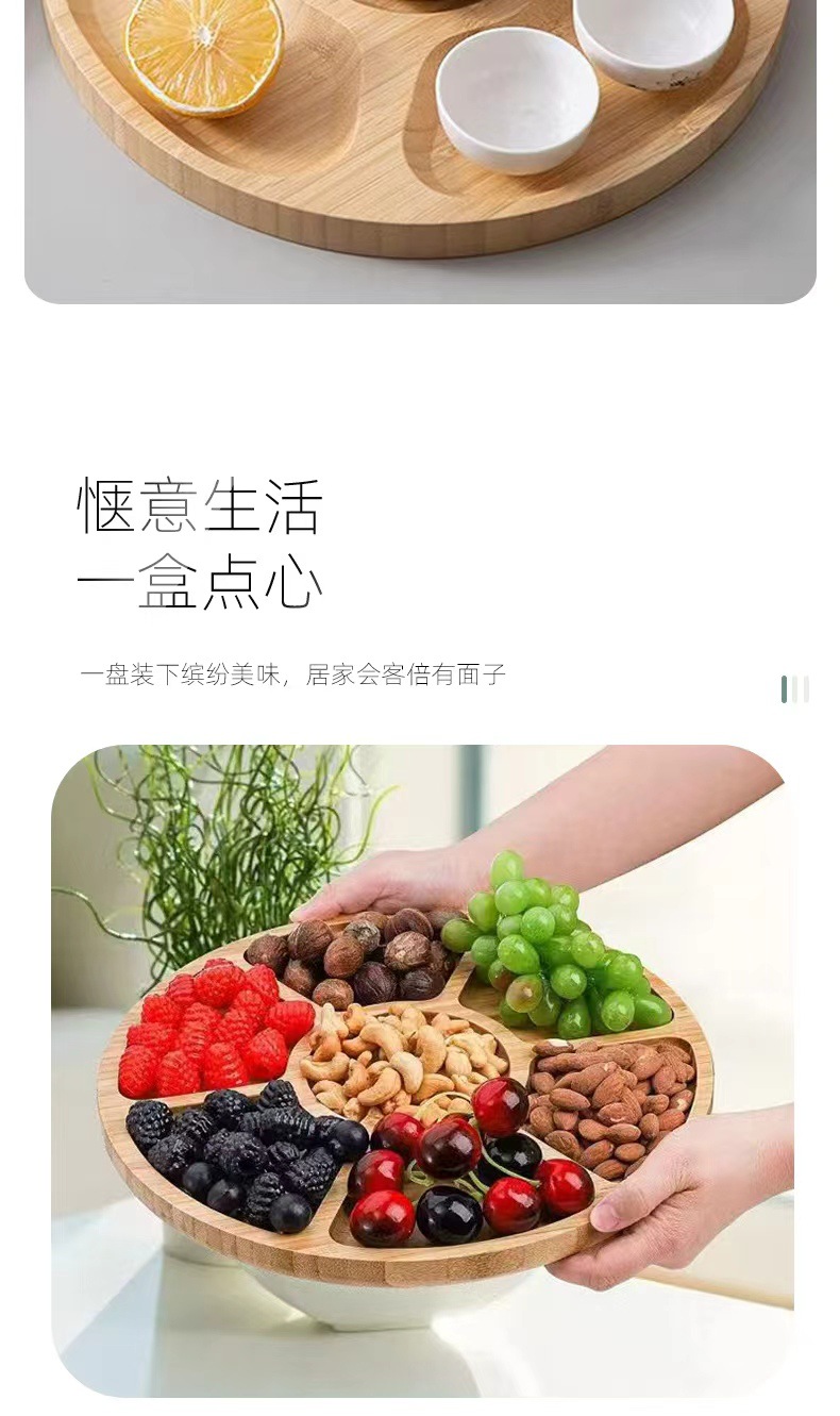 In-Stock Thickened Children's Safety Bamboo Round Compartment Tray Wooden Tableware Snack Tea Break Tray
