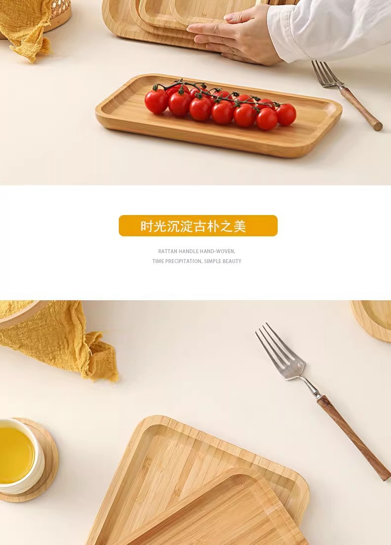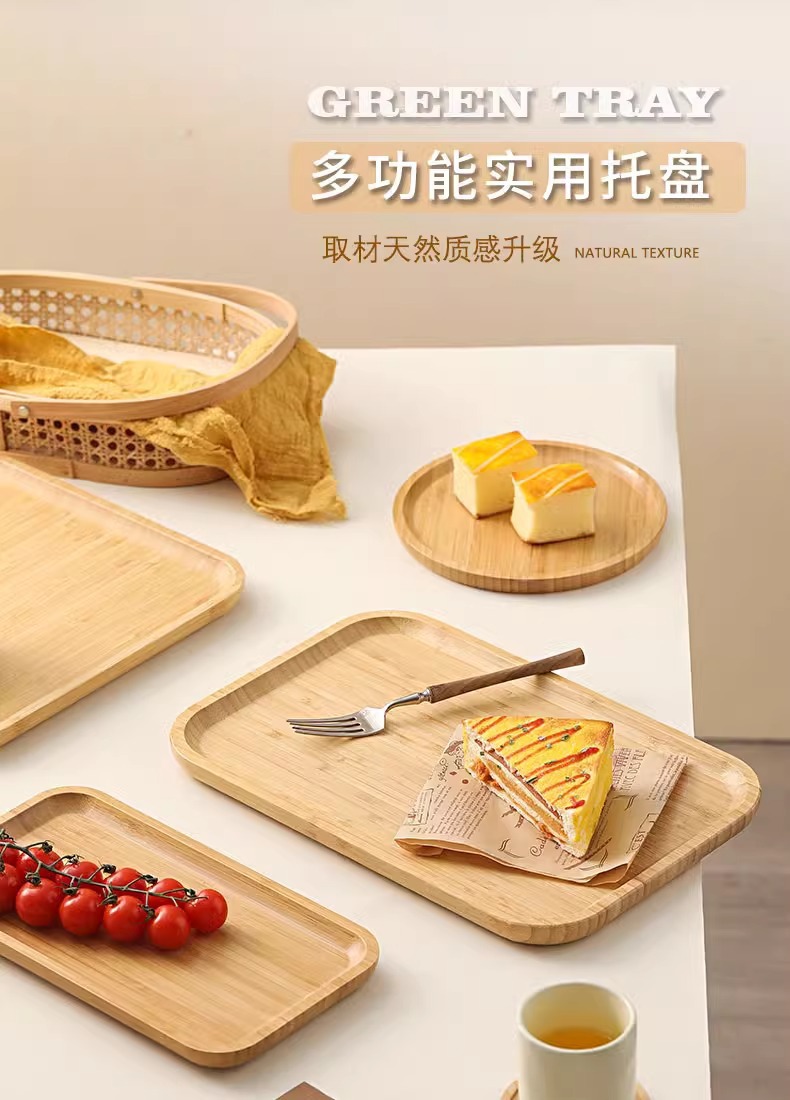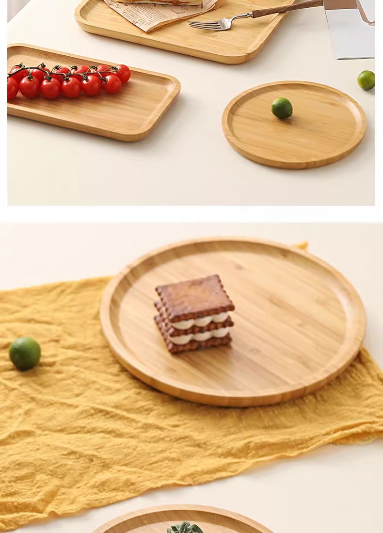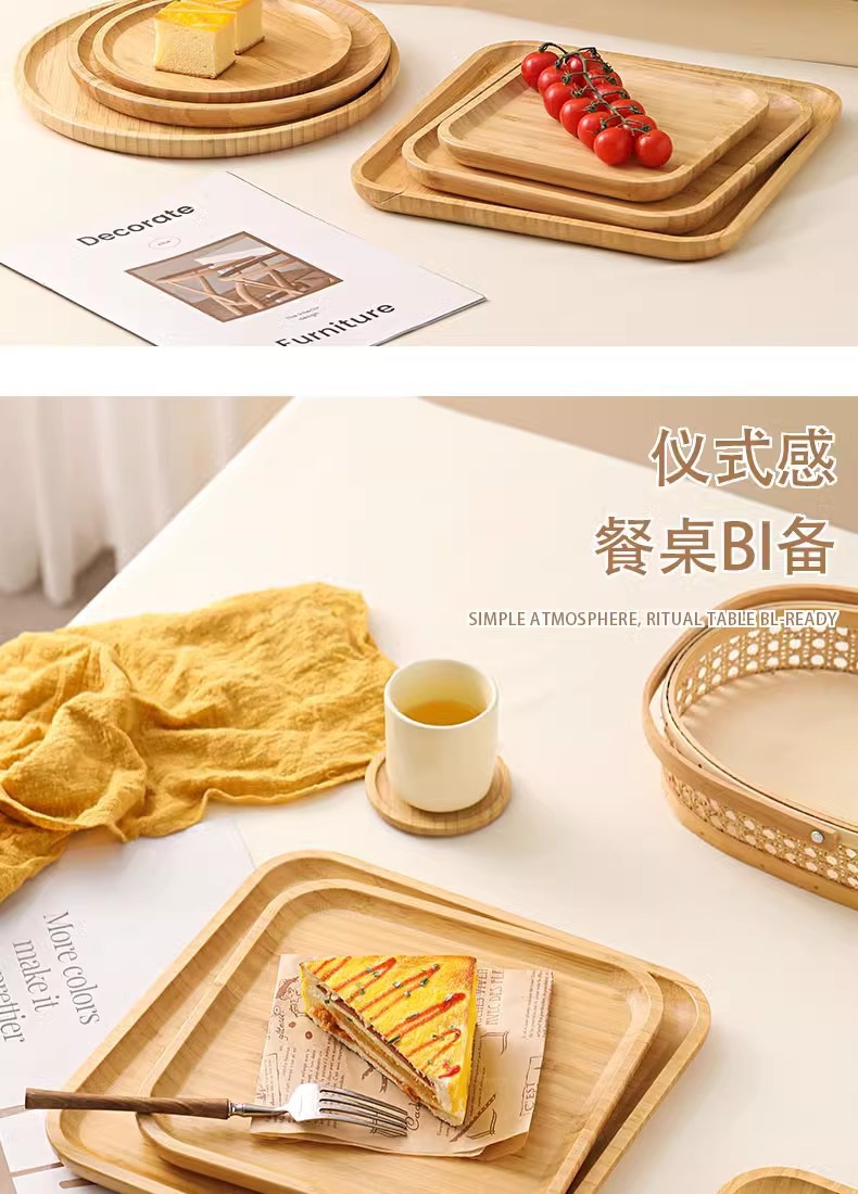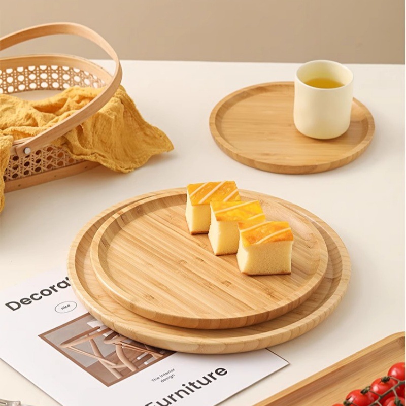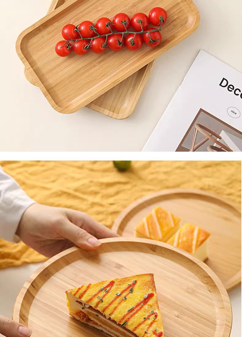 Japanese Style Ins Bamboo and Wood Breakfast Plate Afternoon Tea Coffee Dessert Plate Home Hotel Serving Dinner Plate Tray