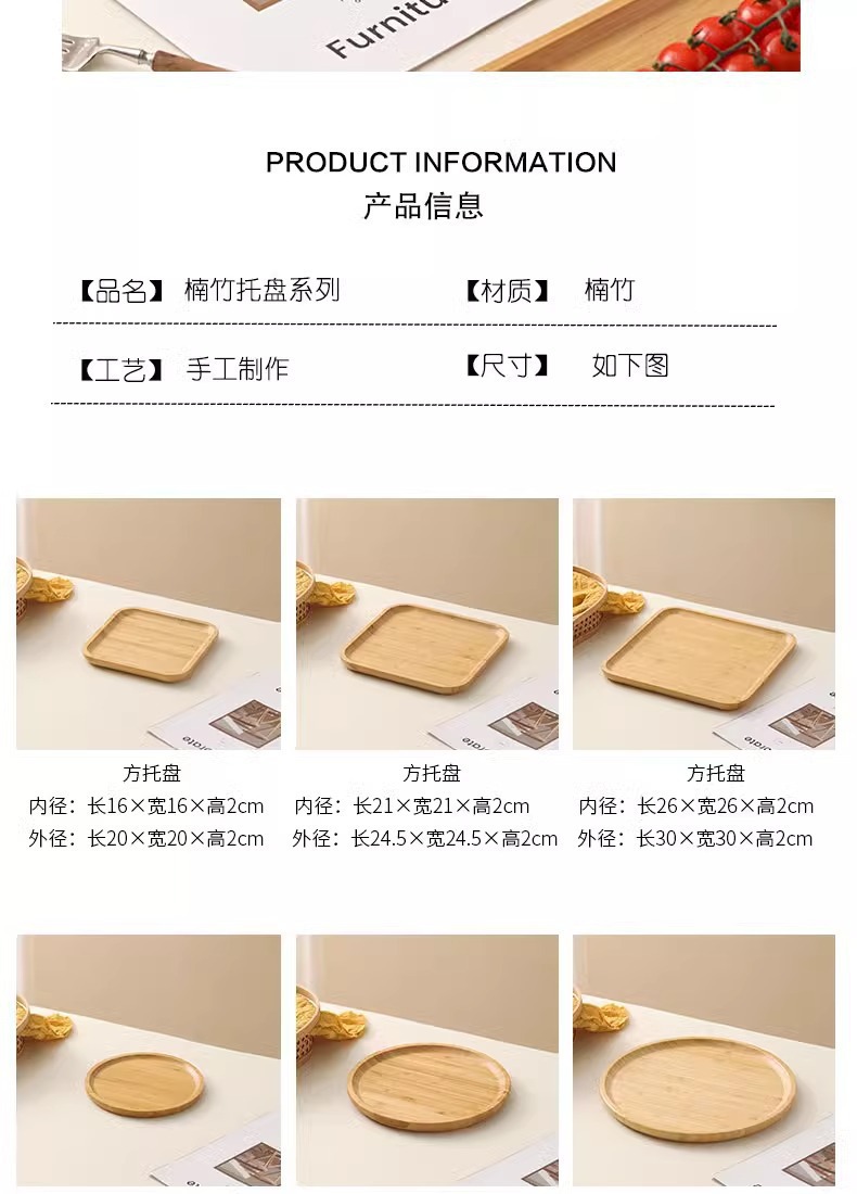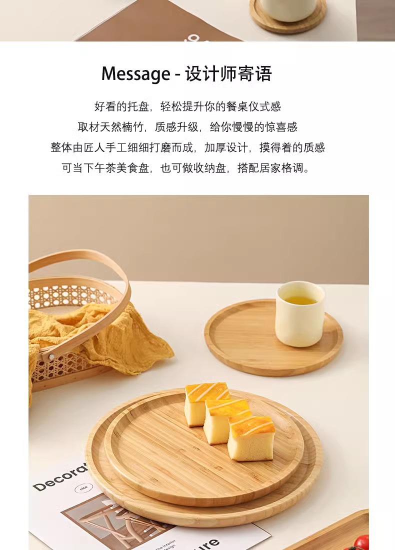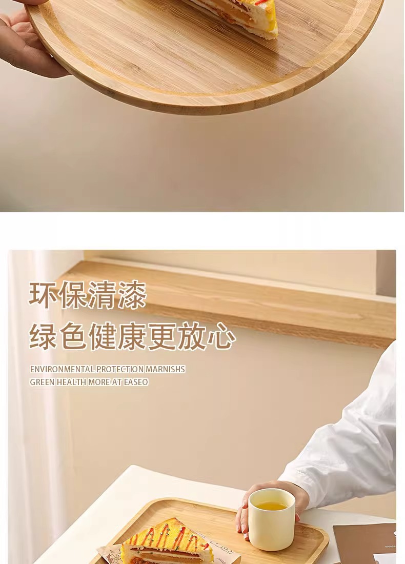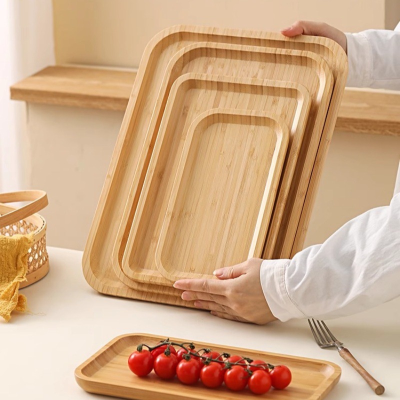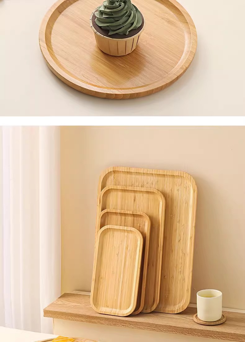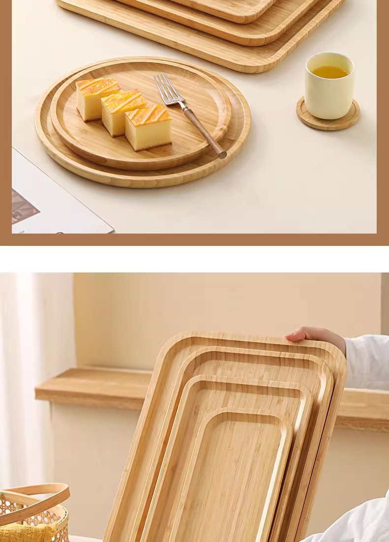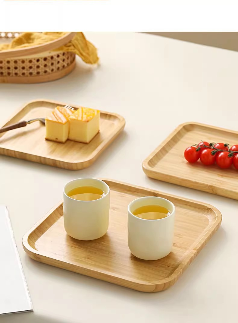 Japanese Style Ins Bamboo and Wood Breakfast Plate Afternoon Tea Coffee Dessert Plate Home Hotel Serving Dinner Plate Tray