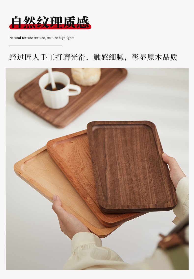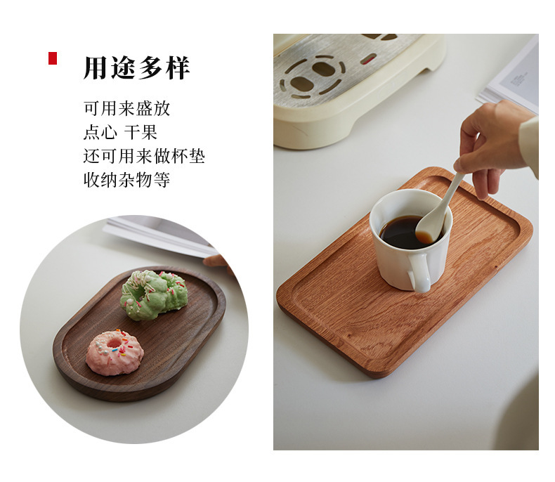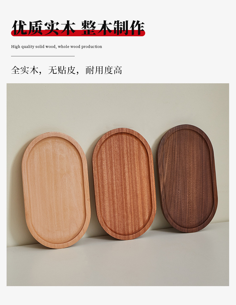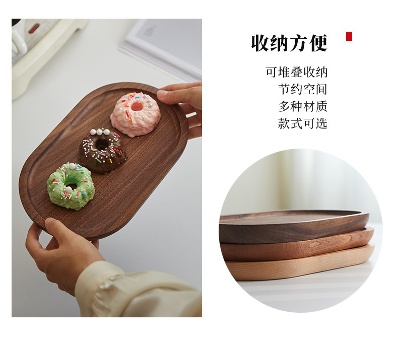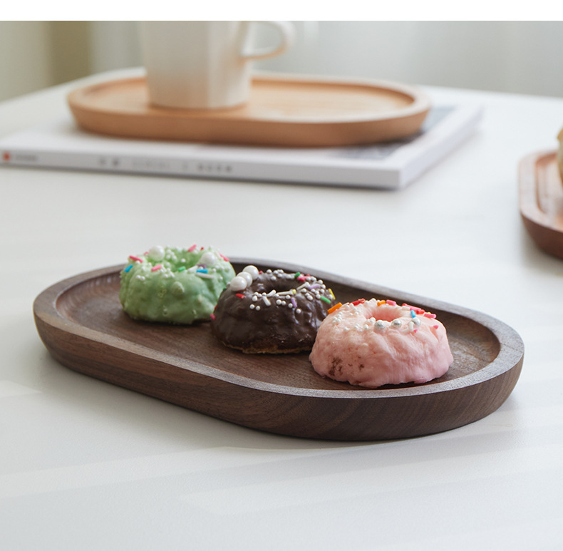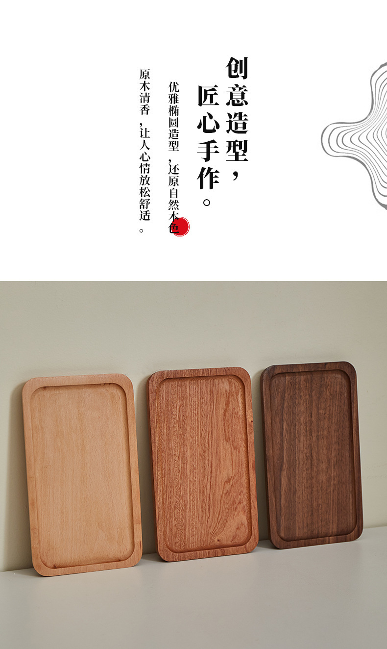 Japanese-style Oval Wooden Tray Solid Wood Rectangular Dinner Plate Black Walnut Afternoon Tea Coffee Tray Exquisite Small Tray