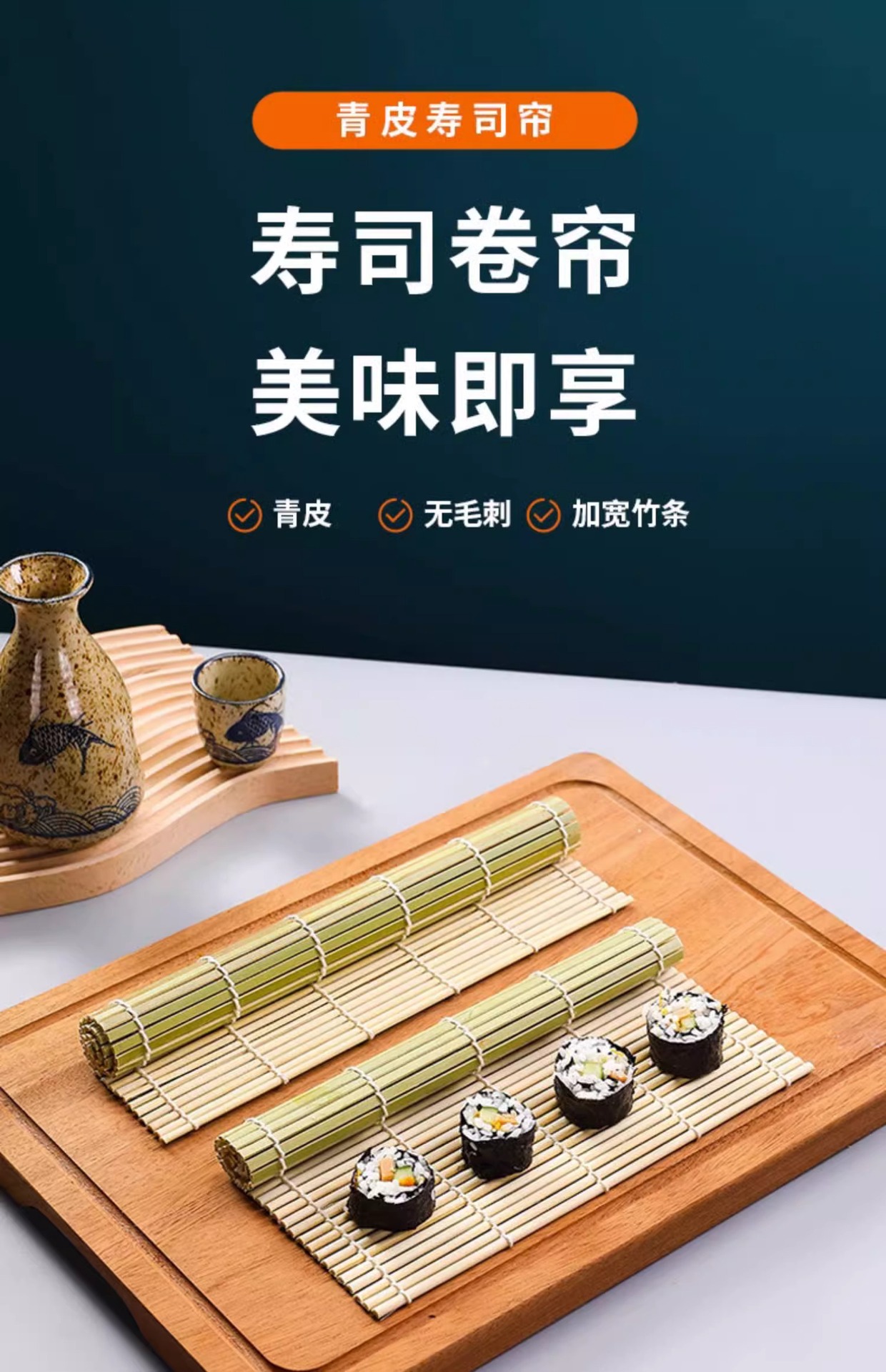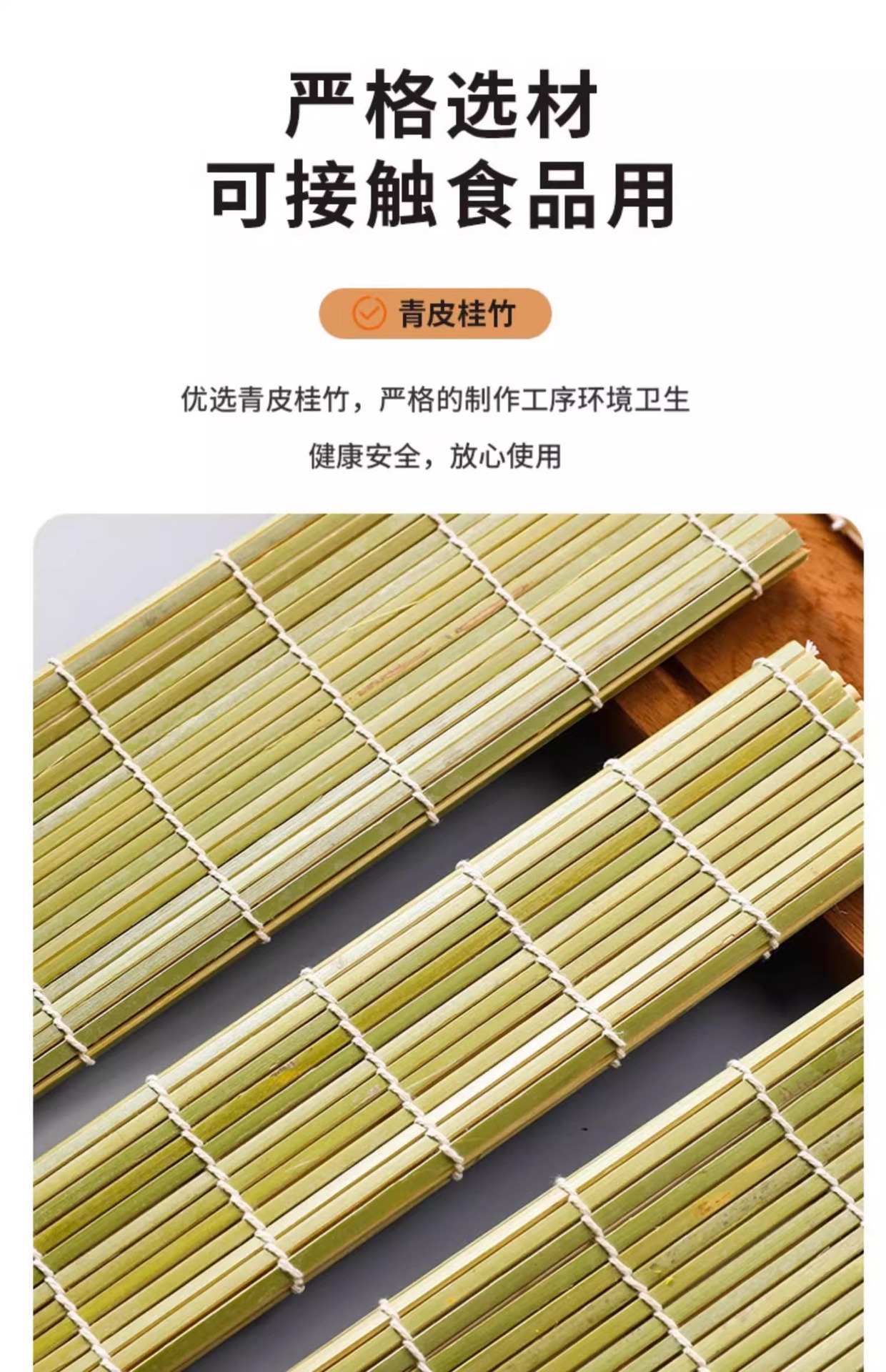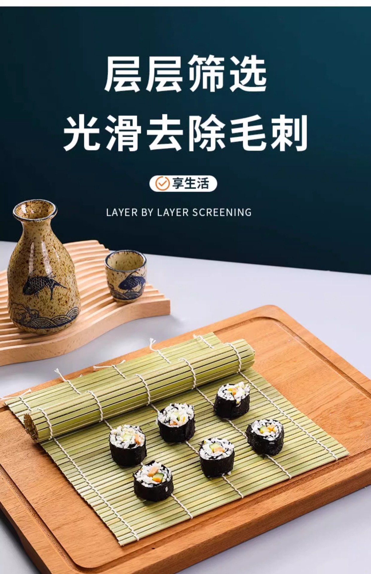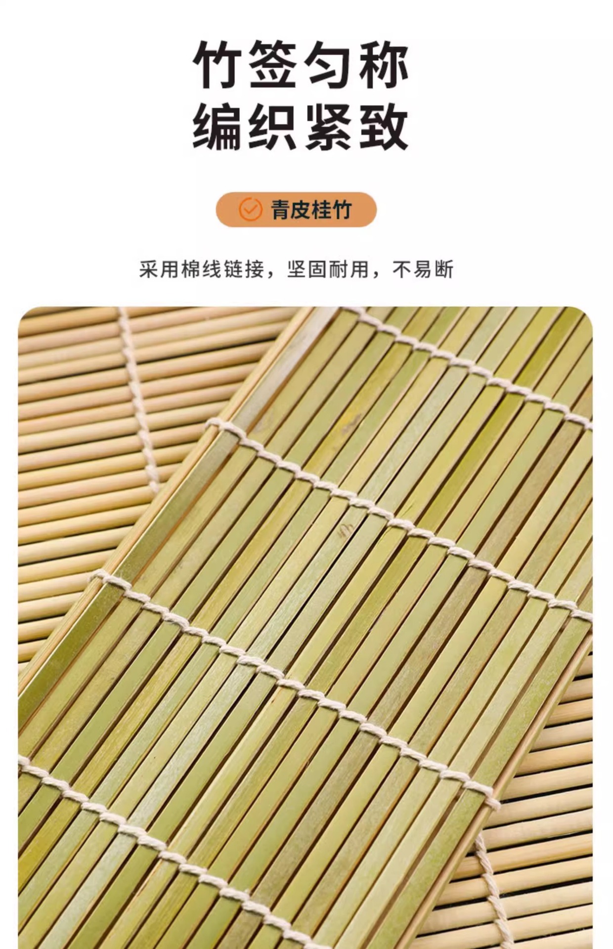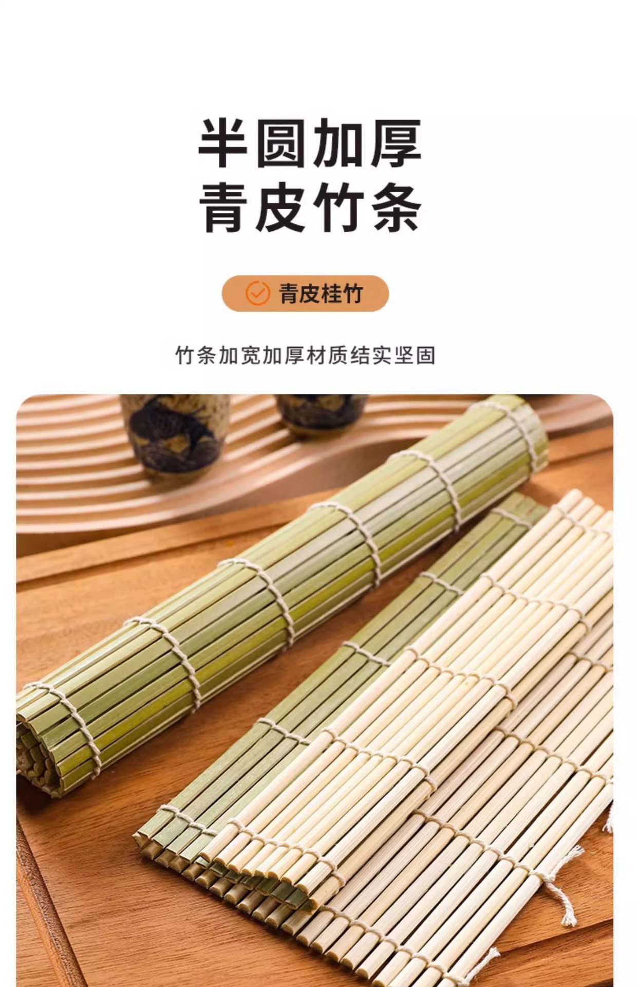 Natural Classic Bamboo Sushi Roller Green Skin Sushi Rolls Sushi Curtain Japanese Porphyra Rice Artifact Sushi Tools