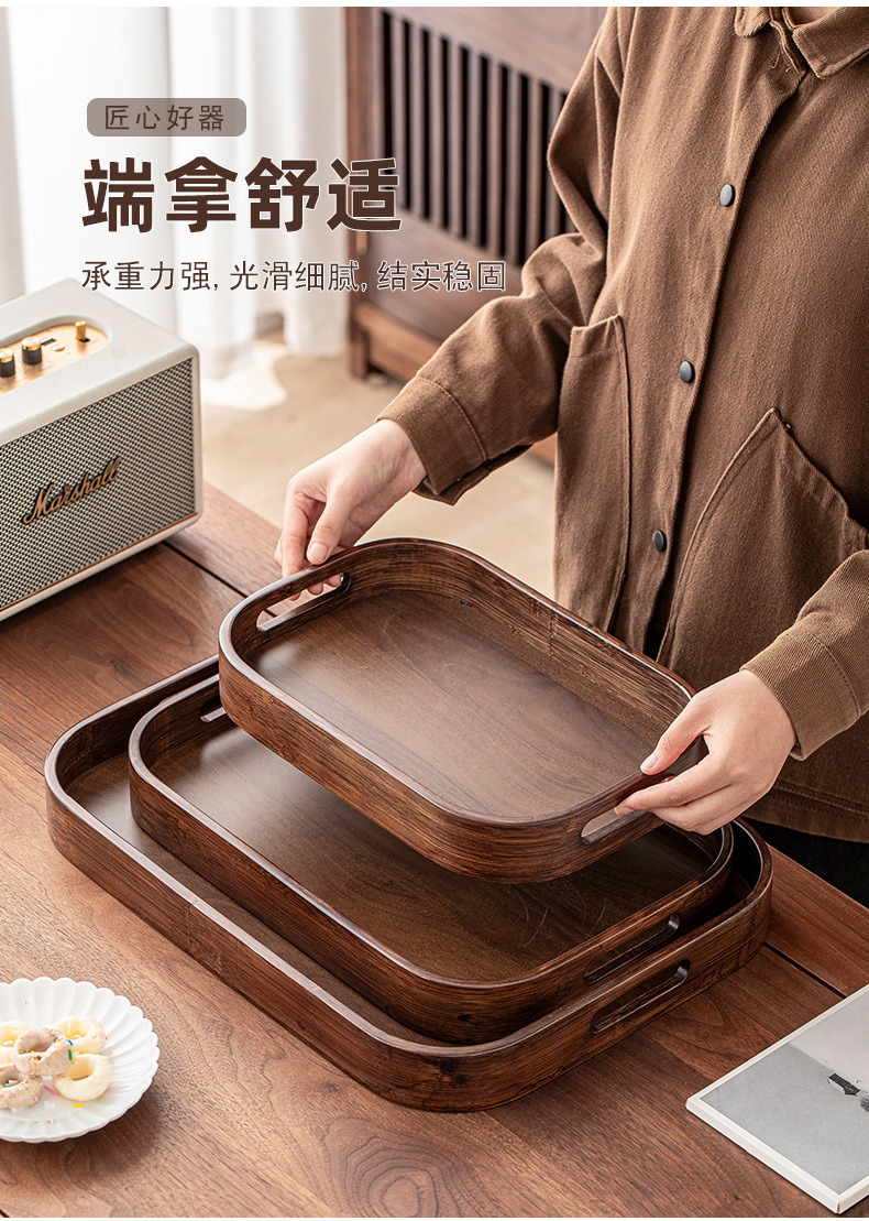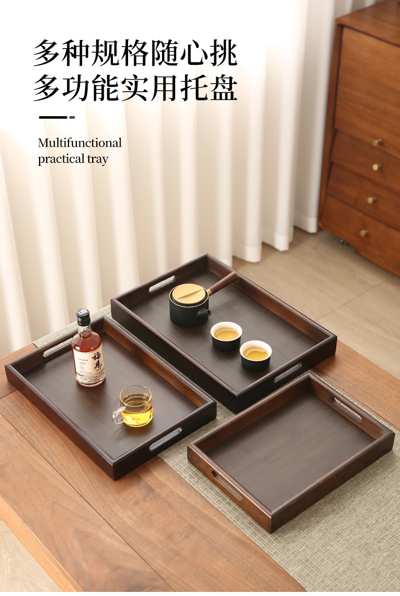 Natural Wooden Tray for Home Use, Small Japanese-Style Pastry Tray, Rectangular Dry Tea Tray, Single-Person Tea Tray, Small Tea Table