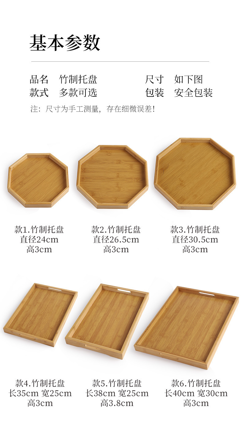 ColorNatural color flat tray 25*14*4cm, Natural color flat tray 29*20*4cm, Natural color flat tray 33*22*4cm, Natural color flat tray 35*25*4cm, Natural color flat tray 38*26*4cm, Natural color flat tray 44*30*4cm, Natural color flat tray 52*34*4cm, Walnut color flat tray 25*14*4cm, Walnut color flat tray 29*20*4cm, Walnut color flat tray 33*22*4cm, Walnut color flat tray 35*25*4cm, Walnut color flat tray 38*26*4cm, Walnut color flat tray 44*30*4cm, Walnut color flat tray 52*34*4cm, Walnut color small size 28.5*20*4cm, Walnut color medium calm 33.5*22.5*4cm, Walnut color large capacity 37*25.5*4.5cm, Walnut grain small ruyi tea set 29*21*2.3cm, Walnut grain large ruyi tea set 37*26*2.3cm, Walnut wood grain extra-large "ruyi" tea serving tray, 45*31*2.3cm, Walnut grain small oval tea tray 29*21*2.3cm, Walnut grain medium oval tea tray 36*25*2.3cm, Walnut grain large oval tea tray 44*31*2.3cm, Walnut grain small round tea set 25*25*2.3cm, Walnut color wood grain round tea tray 30*30*2.3cm, Walnut grain large round tea tray 35*35*2.3cm, Walnut grain extra large round tea set 40*40*2.3cm, Walnut grain small rectangular tea tray 33*22*2.3cm, Walnut grain medium rectangular tea tray 40*28*2.3cm, Walnut grain large rectangular tea tray 43*33*2.3cm, Small rectangular tea mat tea serving 33*22*2.4cm, Medium rectangular tea mat and tea serving 40*28*2.4cm, Large rectangular bamboo mat tea serving 43*33*2.3cm, Walnut grain small oval flat handle 29*21*5cm, Walnut grain medium oval flat handle 36*25*5cm, Walnut grain large oval flat handle 44*31*5cm, Walnut grain small round flat handle 25*25*5cm, Walnut grain medium round flat handle 30*30*5cm, Walnut grain large round flat handle 35*35*5cm, Walnut grain extra large round flat handle 40*40*5cm, Walnut grain small rectangular flat handle 33*22*5cm, Walnut grain medium rectangular flat handle 40*28*5cm, Walnut grain large rectangular flat handle 43*33*5cm, Natural tea offering 28*19cm, Natural tea offering 33*22cm, Natural tea offering 37*26cm, Natural tea offering 41*29cm, Walnut color tea offering 28*19cm, Walnut color tea offering 33*22cm, Walnut color tea offering 37*26cm, Single board (actual picture as shown), Rosewood color small round carved plate 20*20*2cm, Rosewood color medium round carved plate 25*25*2cm, Rosewood color large round carved plate 30*30*2cm, Rosewood color small square carved plate 20*20*2, Rosewood color medium square carved plate 25*25*2cm, Rosewood color large square carved plate 30*30*2cm, Rosewood color small rectangular carved plate 30*20*2cm, Rosewood color medium rectangular carved plate 40*30*2cm, Rosewood color large rectangular plate 49*28*2cmDiameter18-18.9cm