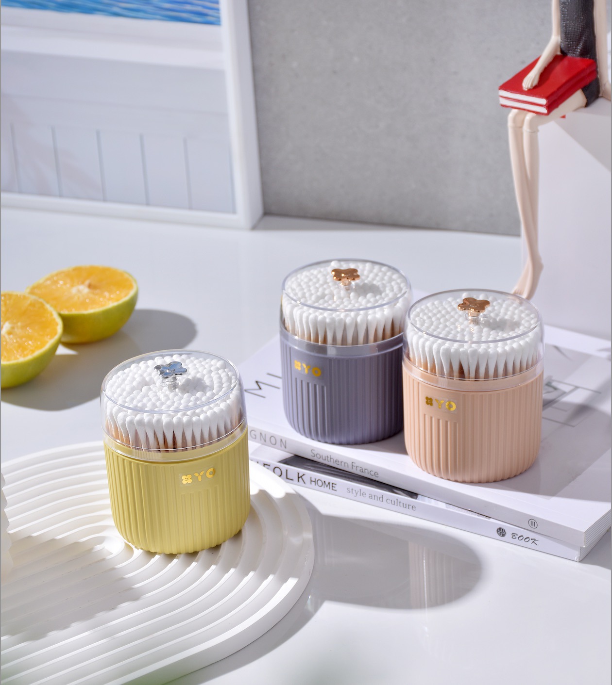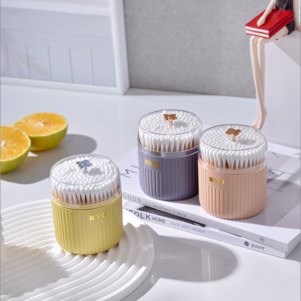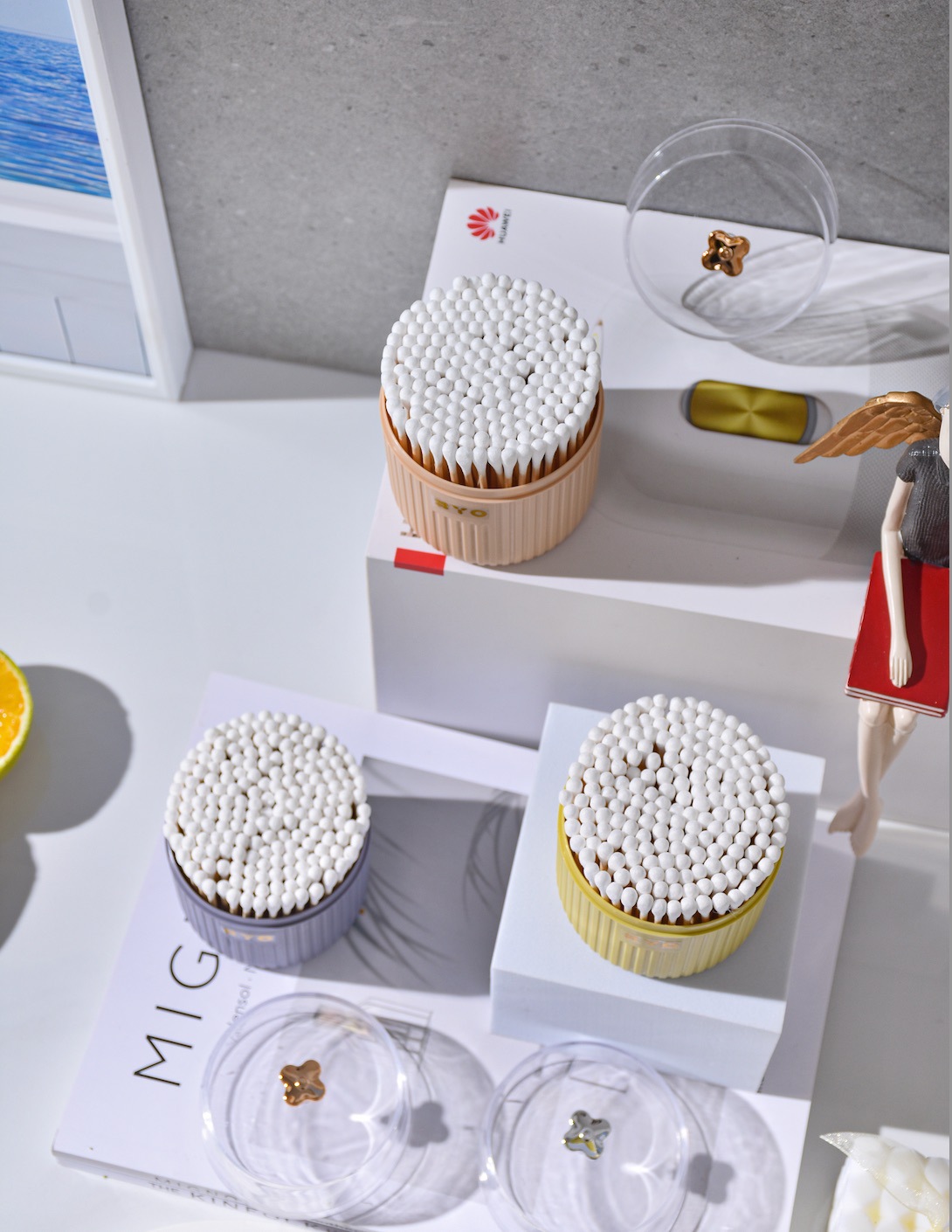 New Creative Four-Leaf Clover Round Canned Cotton Swab Cotton Swab Stick Transparent Makeup Cleaning Cotton Swab Stick