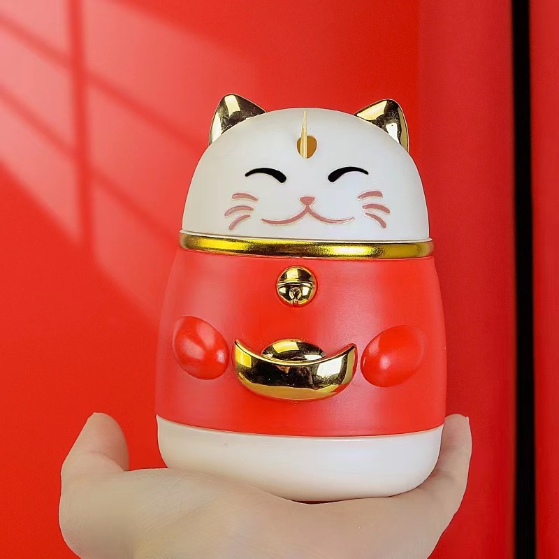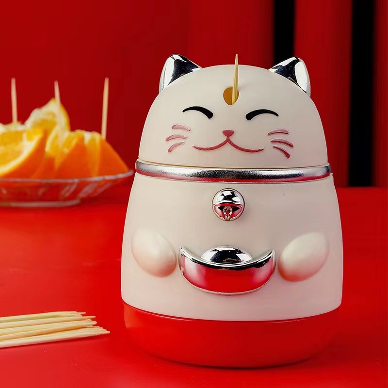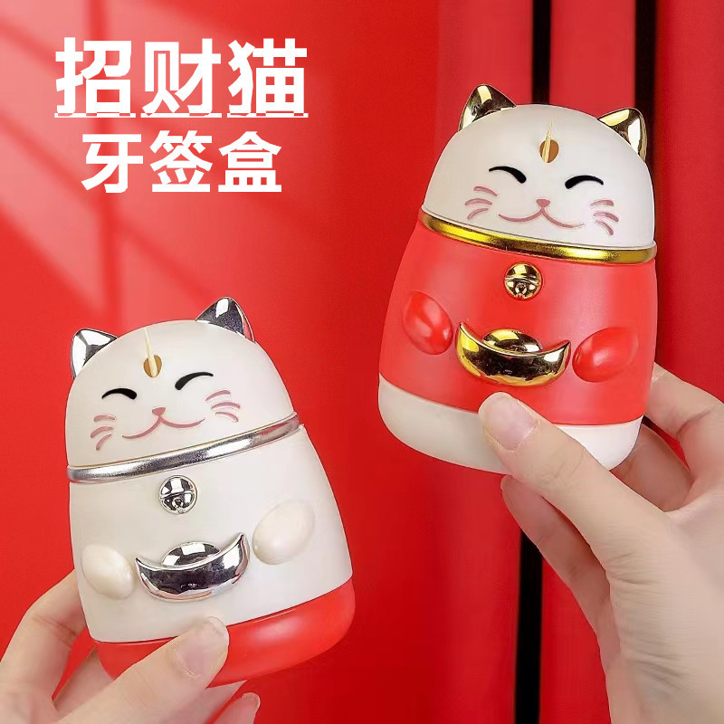 New Creative Portable National Trend Cartoon Lucky Cat Push-Type Toothpick Storage Tube Jar Toothpick Box New Year Gift