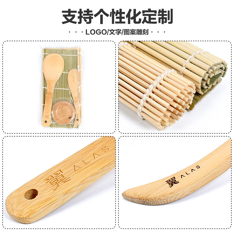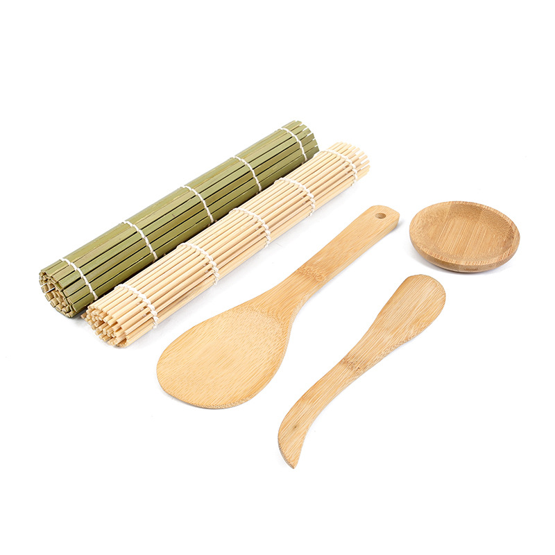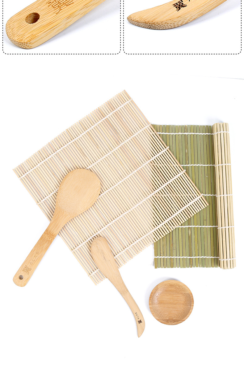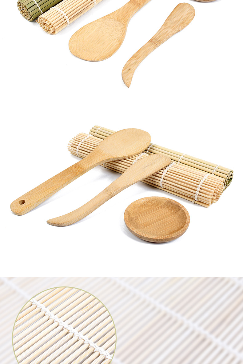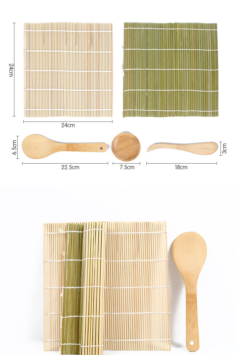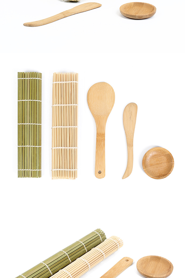 New sushi tools suit laver wrapped rice bamboo curtain roller shutter mold sushi roll bamboo spoon bamboo knife green leather sushi roll