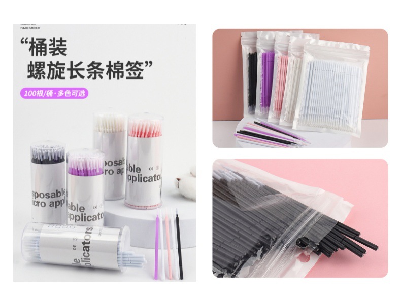 New wholesale long head cotton swab eyelash tattoo nail cleaning cotton swab eyelash disposable long thread cotton swab