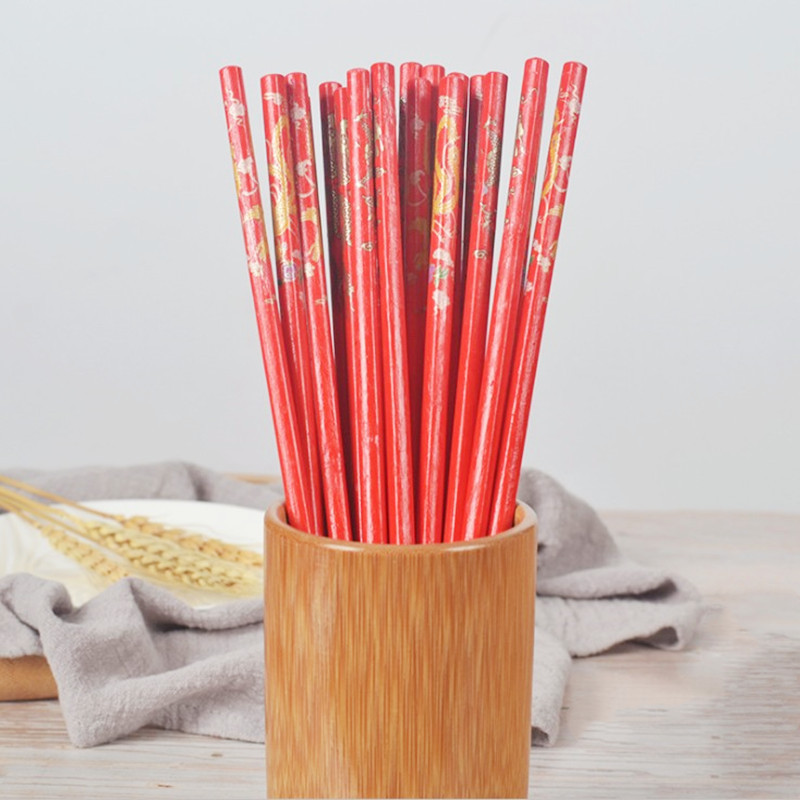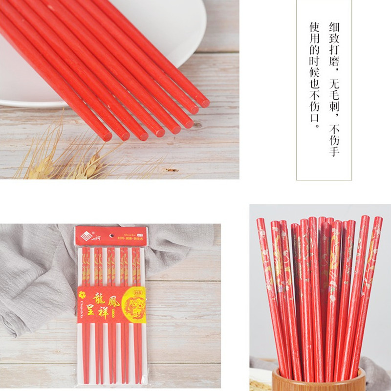 Red Bamboo Chopsticks Wedding Festive Supplies Red Chopsticks Creative Dragon and Phoenix Chopsticks Wedding Dragon and Phoenix Chopsticks