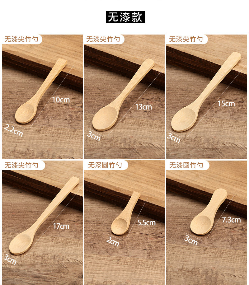 Polishing processBurlap lightColor13*3cm unpainted round wooden spoon (1 piece), 13x3cm lacquer-free round bamboo spoon (1 piece), 13x3cm lacquer-free pointed bamboo spoon (1 piece), 15x3 lacquer-free round bamboo spoon (1 piece), 15x3 lacquer-free pointed bamboo spoon (1 piece), 17x3 lacquer-free round bamboo spoon (1 piece), 17x3 lacquer-free pointed bamboo spoon (1 piece), 15*3.5cm unpainted round wooden spoon (1 piece), 17*3.8cm lacquer-free pointed wooden spoon (1 piece), 10x2.2cm lacquer-free pointed bamboo spoon (1 piece), 9x2.2cm lacquered flat handle bamboo spoon (1 piece), 9x2.2cm lacquered round handle bamboo spoon (1 piece), 13*3cm lacquered round bamboo spoon (1 piece), 13x3cm lacquered pointed bamboo spoon (1 piece), 13.5x2.3cm lacquered pointed bamboo spoon (1 piece), 13.7x2.8cm lacquered pointed bamboo spoon (1 piece), 16x3cm deep mouth painted thick pointed bamboo spoon (1 piece), 16x3cm lacquered round bamboo spoon (1 piece), 16x3.8cm lacquered round bamboo spoon (1 piece), 19x3cm lacquered round bamboo spoon (1 piece), 20x4.5cm lacquered pointed bamboo spoon (1 piece), 5.5x2cm mini lacquer-free round bamboo spoon (1 piece), 7.3x3cm mini lacquer-free round bamboo spoon (1 piece), 9.5x4.5cm lacquered tea spoon (1 piece), 17x3.5cm integrated spoon and fork (1 piece), 16cm bamboo fork (1 piece), 16cm bamboo knife (1 piece), 20cm bamboo fork (1 piece), 20cm bamboo knife (1 piece)