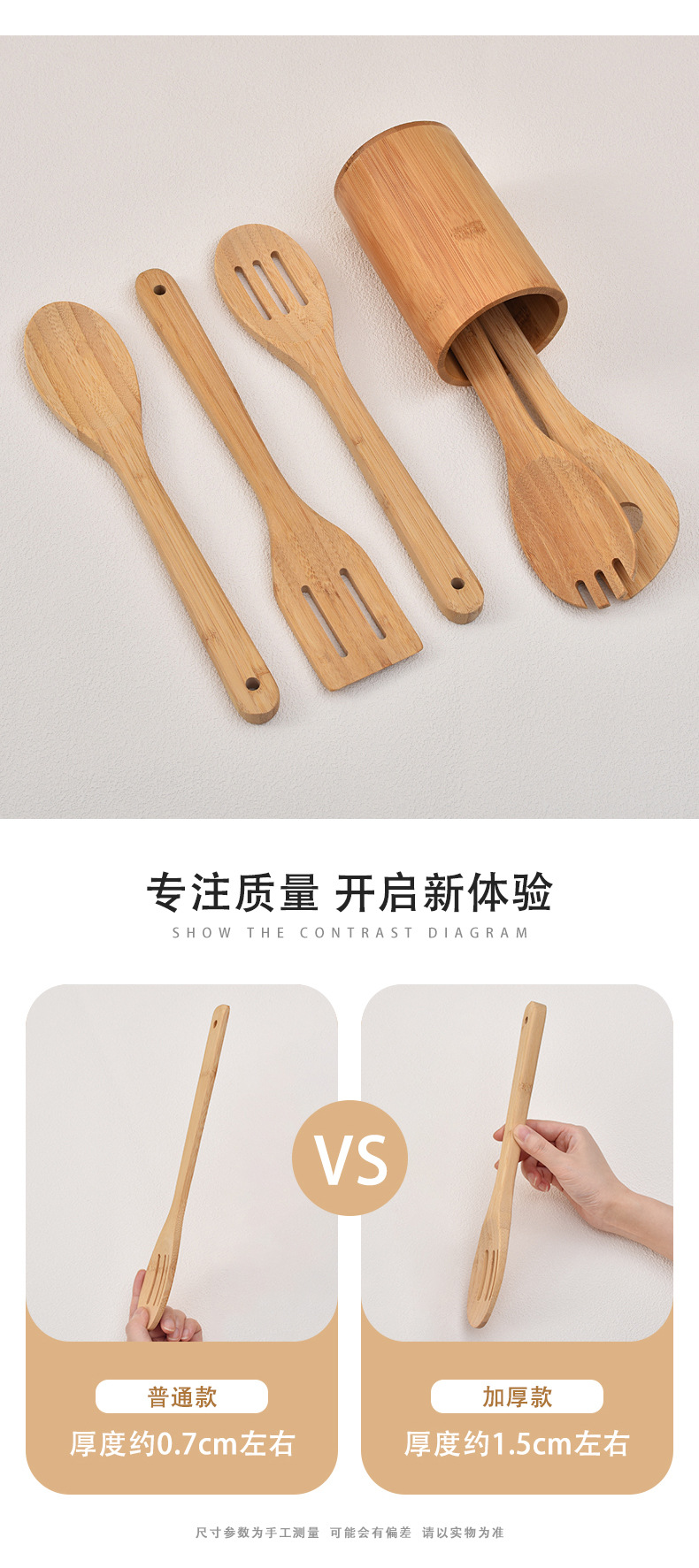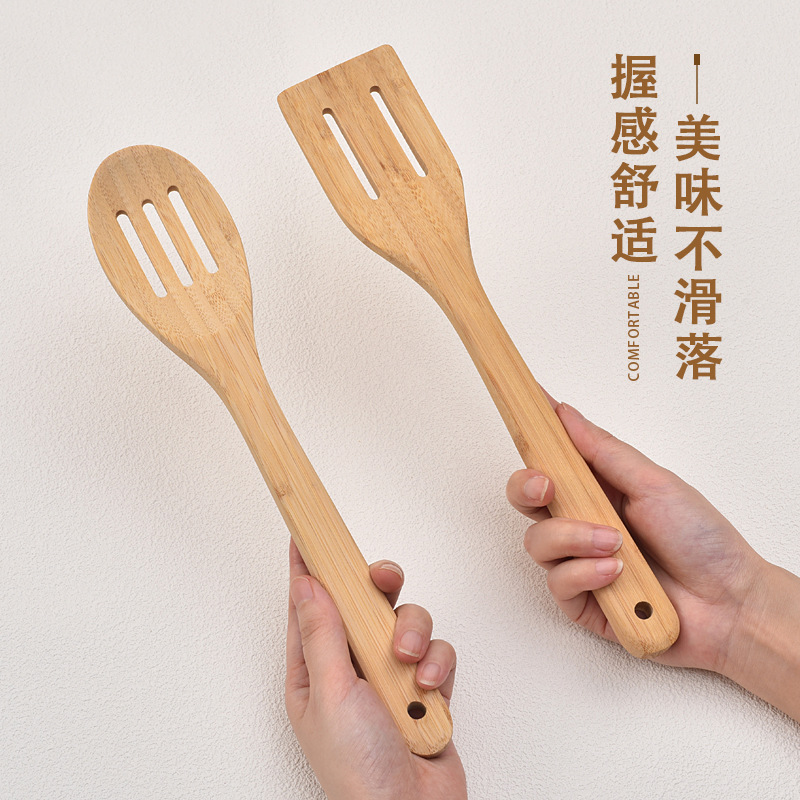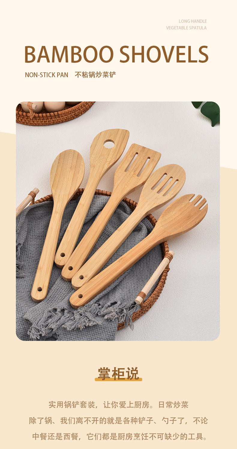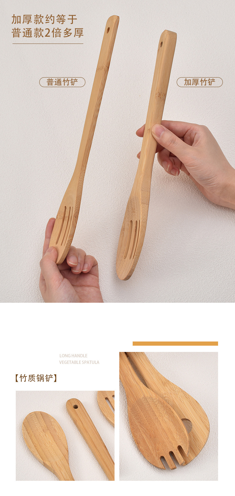 Thickened bamboo long handle spatula large non-stick pan bamboo spatula bamboo spoon Amazon kitchen utensils suit manufacturers wholesale