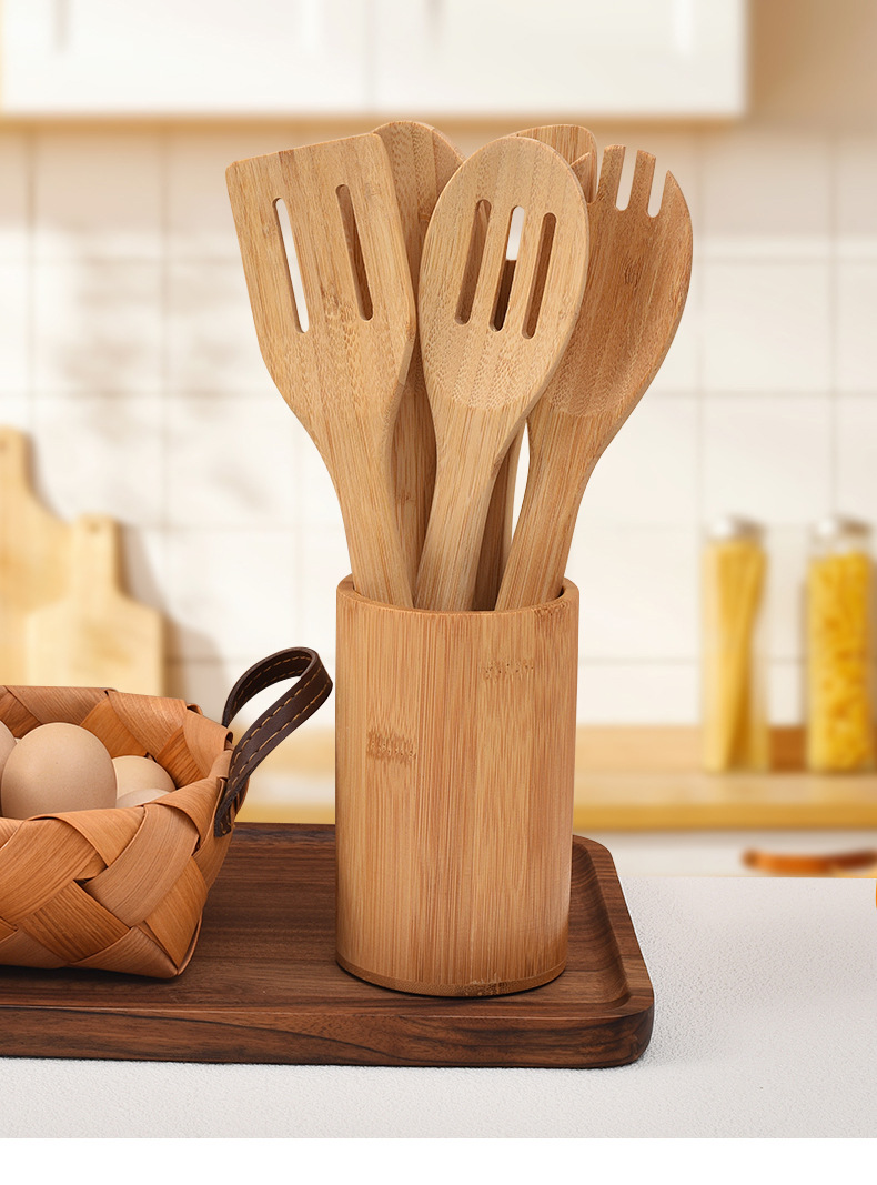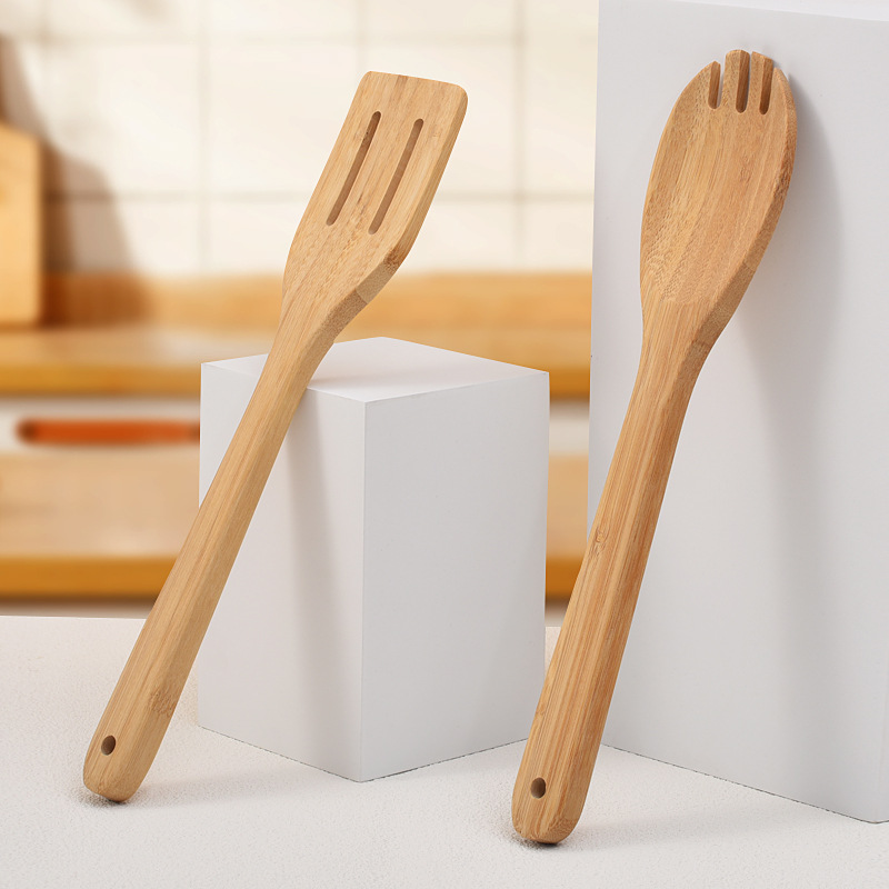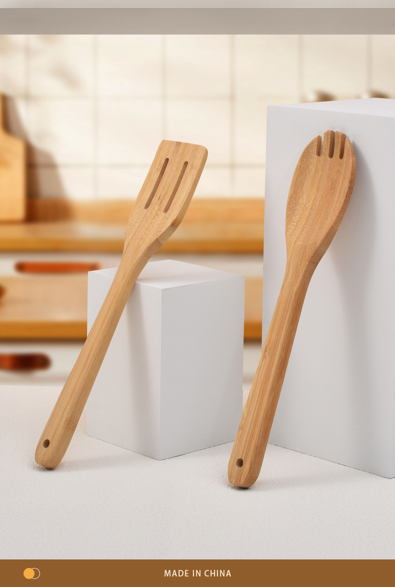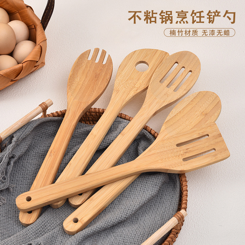 Thickened bamboo long handle spatula large non-stick pan bamboo spatula bamboo spoon Amazon kitchen utensils suit manufacturers wholesale