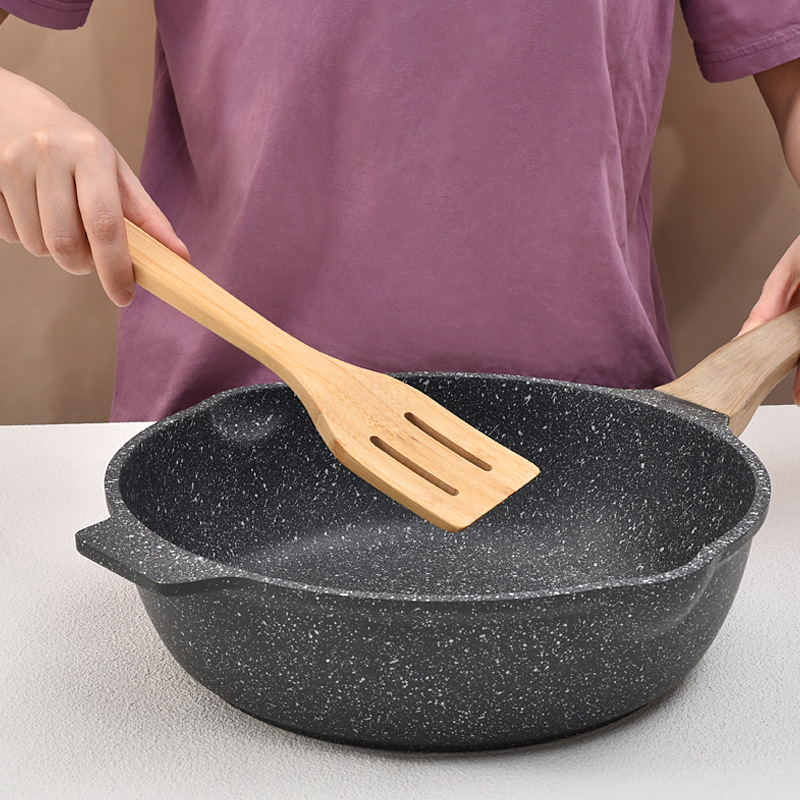 - Functionnon-stick pan, Anti-slip, High temperature resistance, Anti-scald, OtherHandle materialmade of bamboo