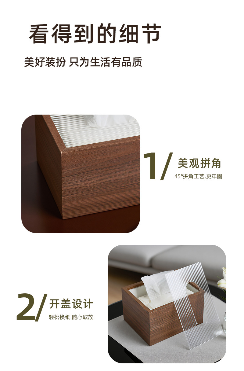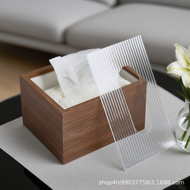 Walnut Color Tissue Box Household Wooden Chinese Style Living Room Tissue Box High-End Hotel Commercial Restaurant Tissue Box Manufacturer