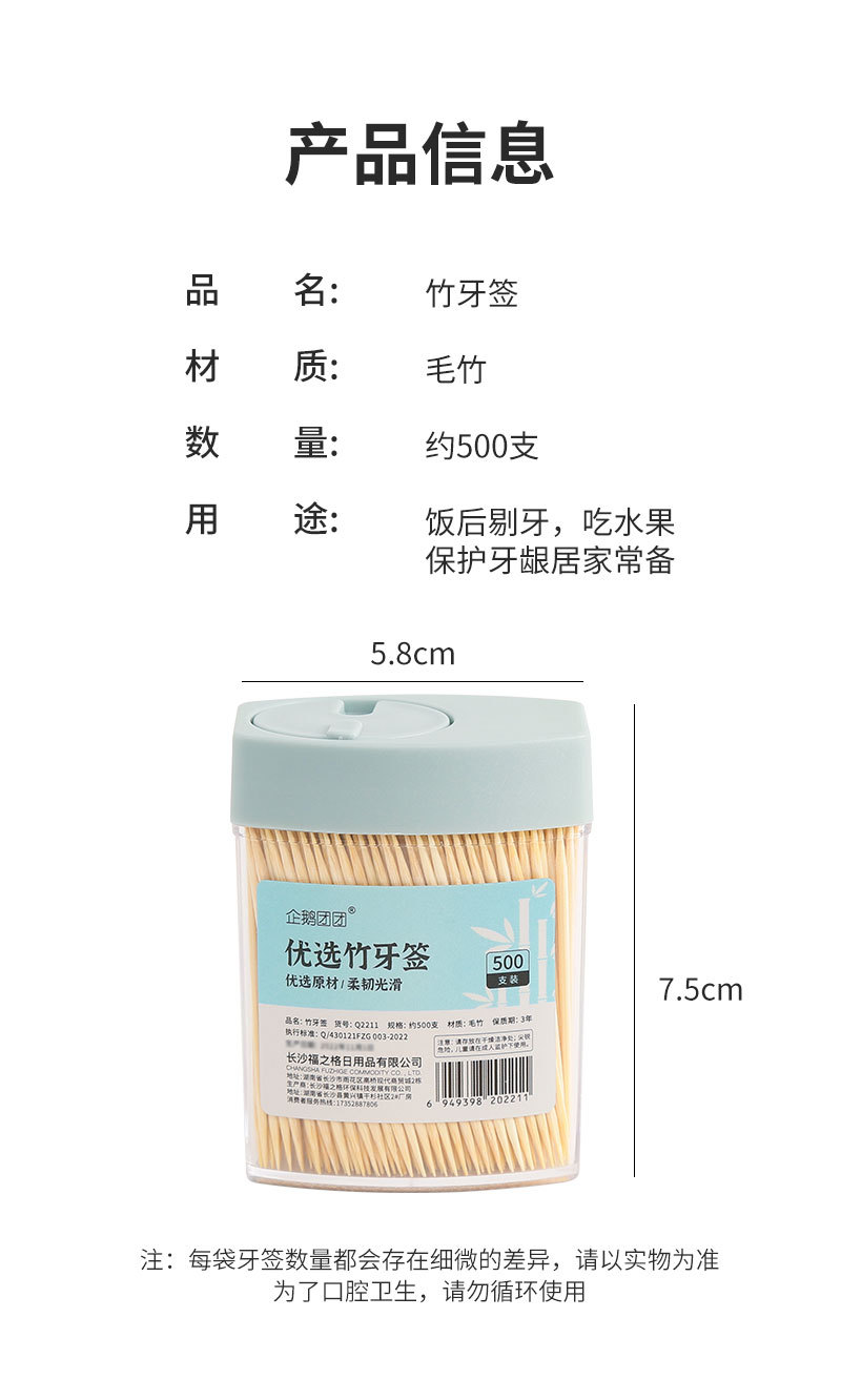 Count onlyMore than 300SpecificationsPreferably, bamboo toothpicks are about 500 sticks/bottle (super models)