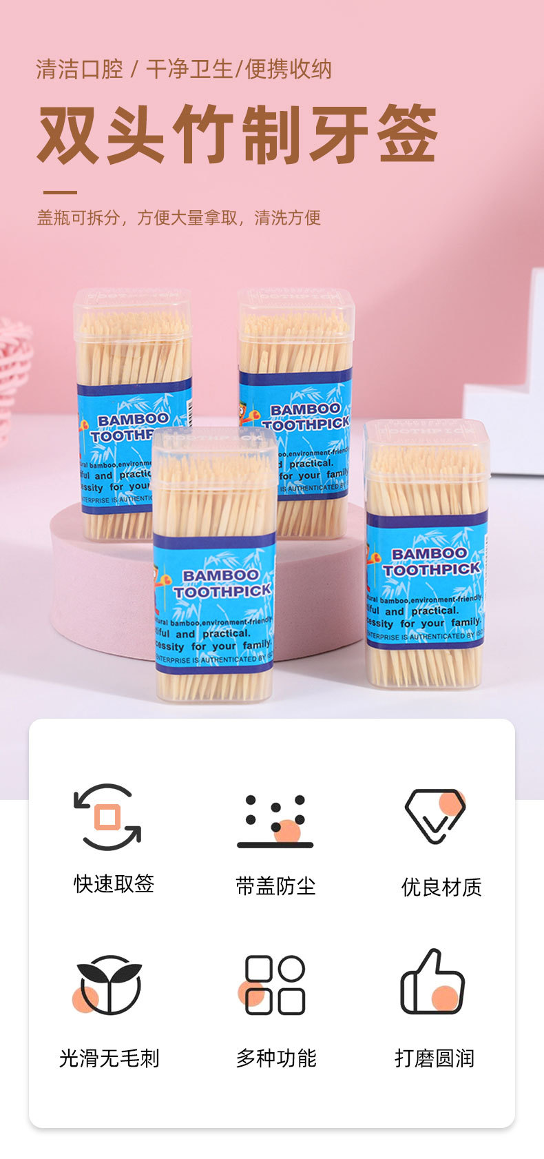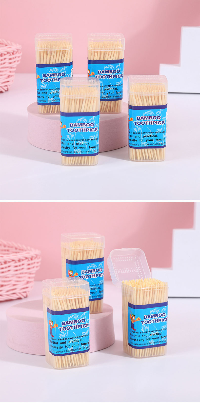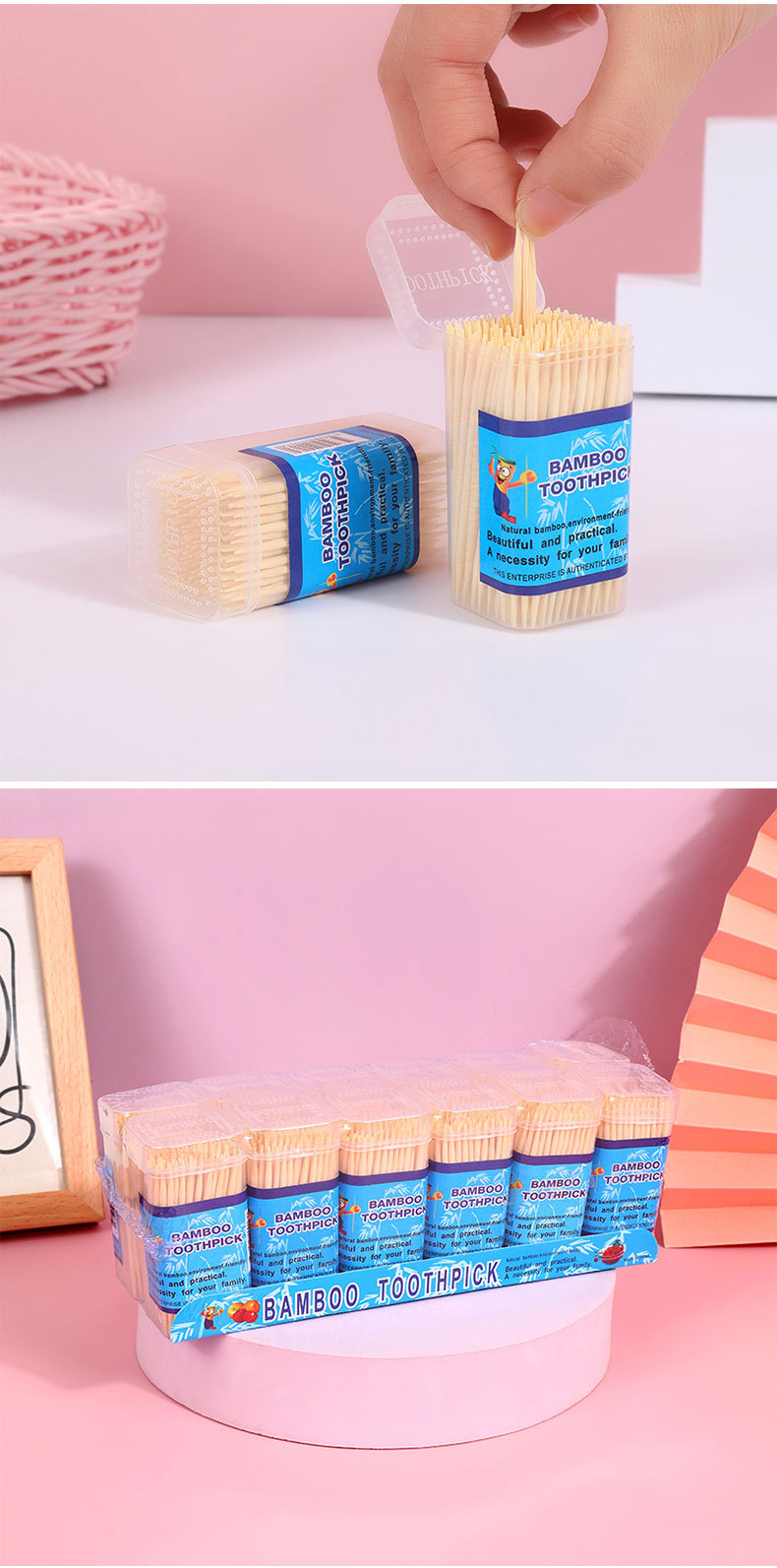 Wholesale Household Fine Toothpick Fruit Sticks 180 Bottled Disposable Double Bamboo Sticks Plastic Transparent Toothpick Box