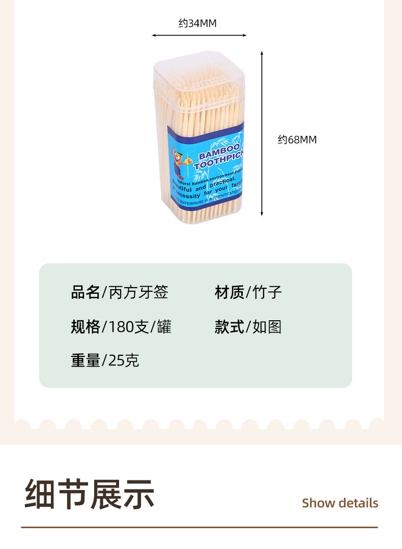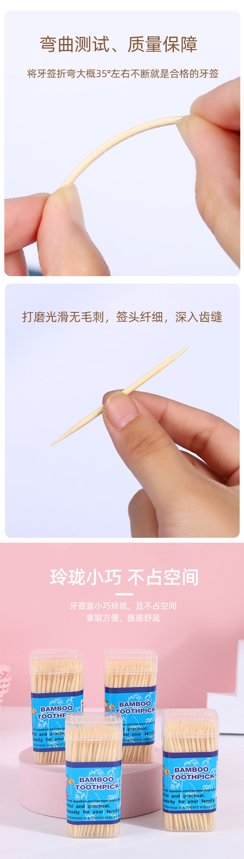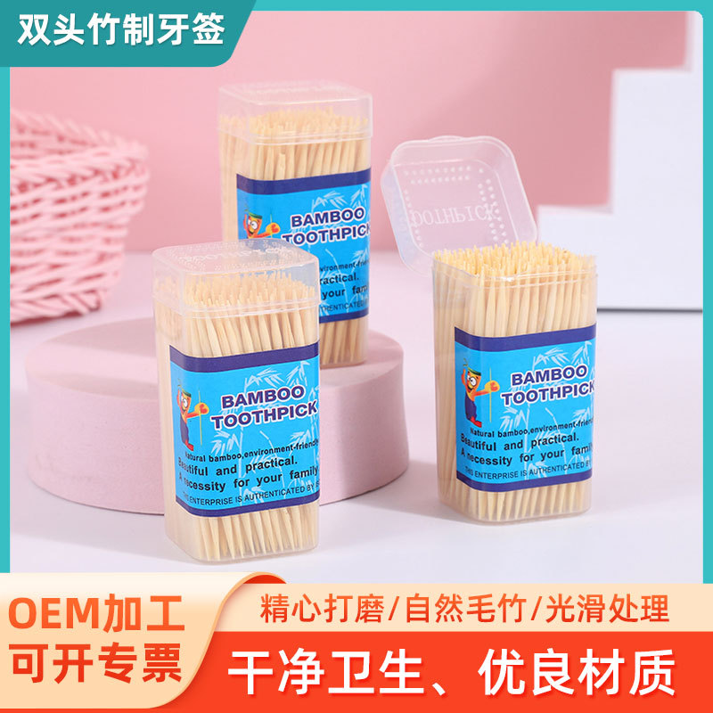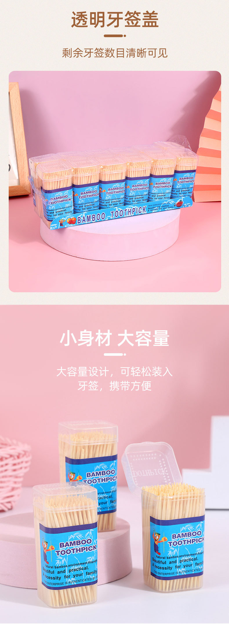 Wholesale Household Fine Toothpick Fruit Sticks 180 Bottled Disposable Double Bamboo Sticks Plastic Transparent Toothpick Box