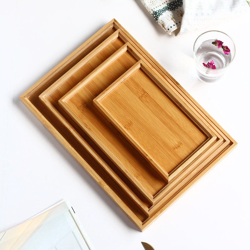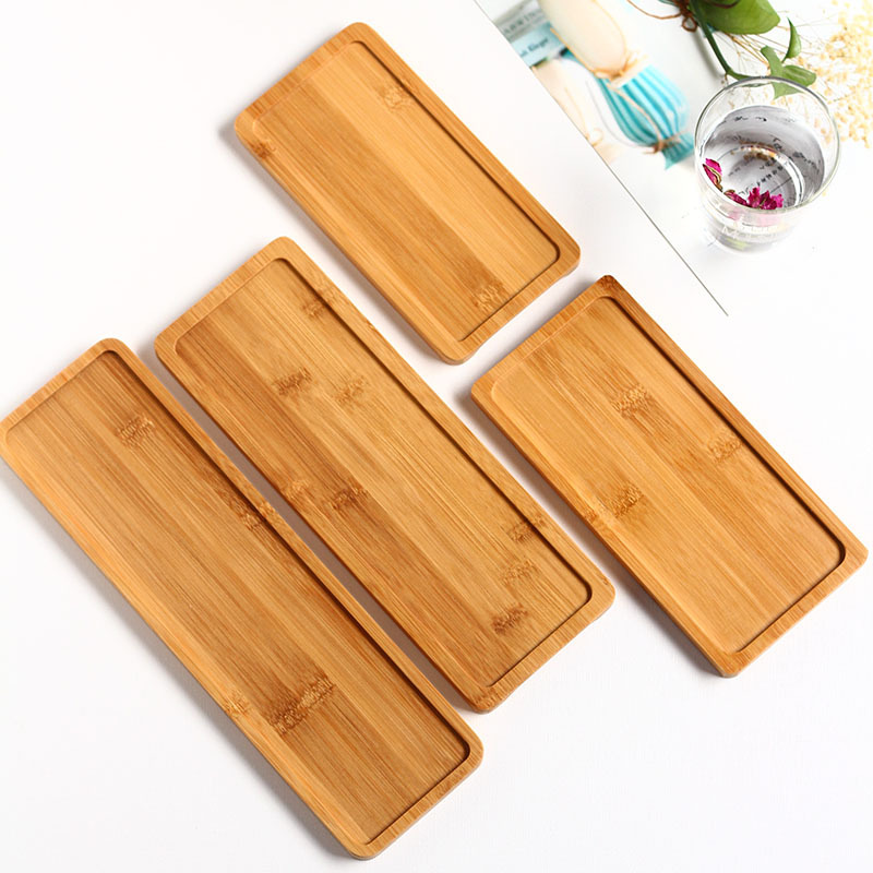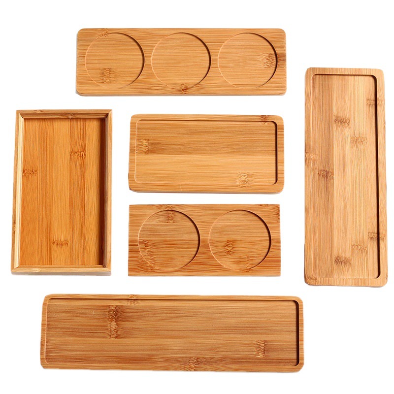 Wholesale Logo Rectangular Bamboo Tray Japanese Solid Wood Tea Tray Sushi Tray Fruit Tray Condiment Bottle Jar Bottom Plate