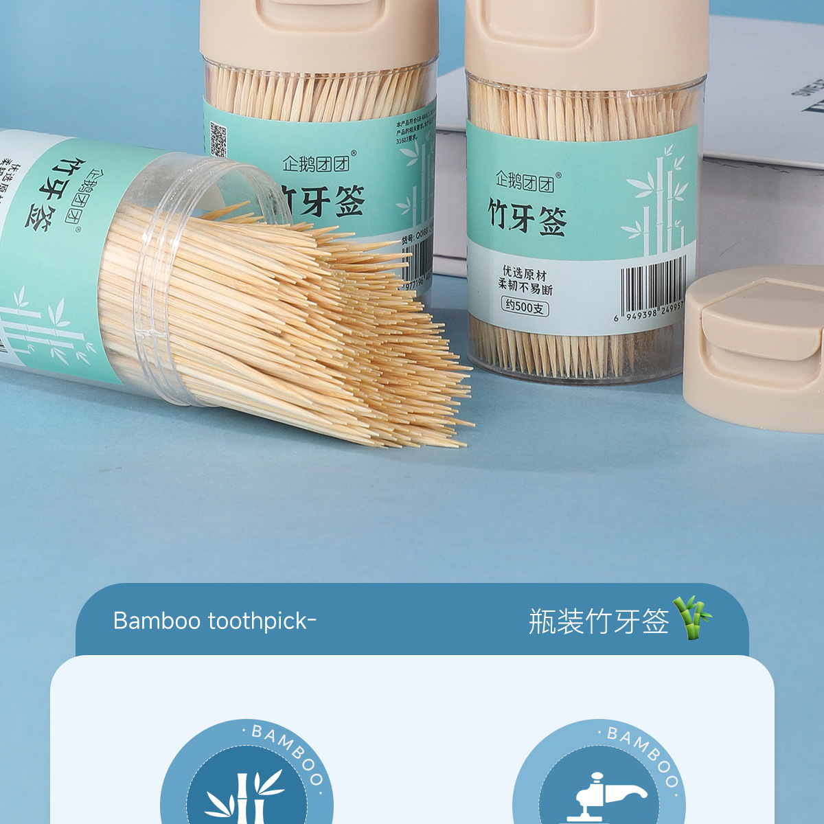 Wholesale Toothpick Boxes for Restaurants, Catering Businesses, Wholesale High-End Bottled Disposable Tube-Packed Double-Headed Bamboo Toothpicks