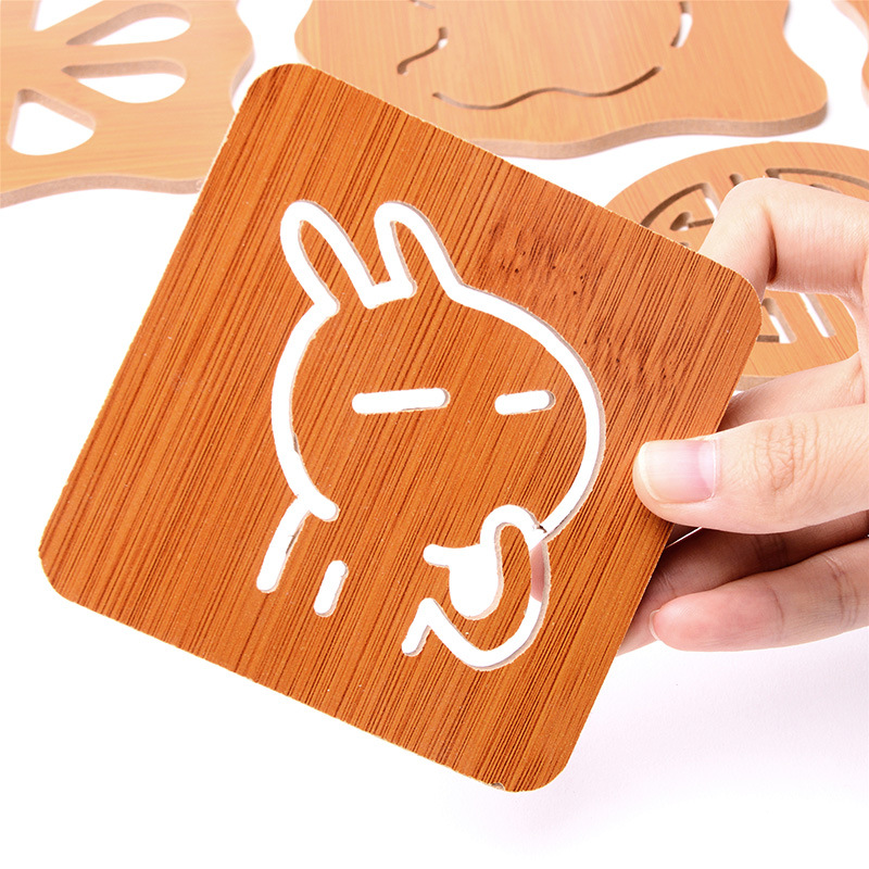 Wooden Cartoon Heat Insulation Mat Dining Table Tea Cup Mat Kitchen Bamboo Wood Non-slip Pot Mat Bowl Mat