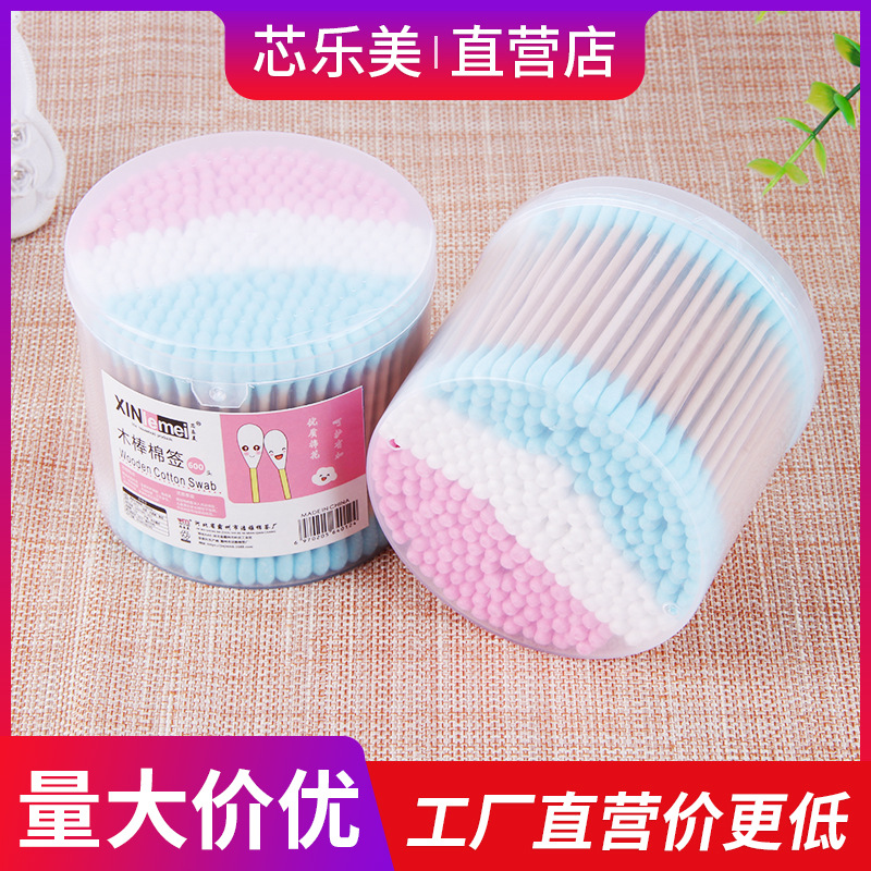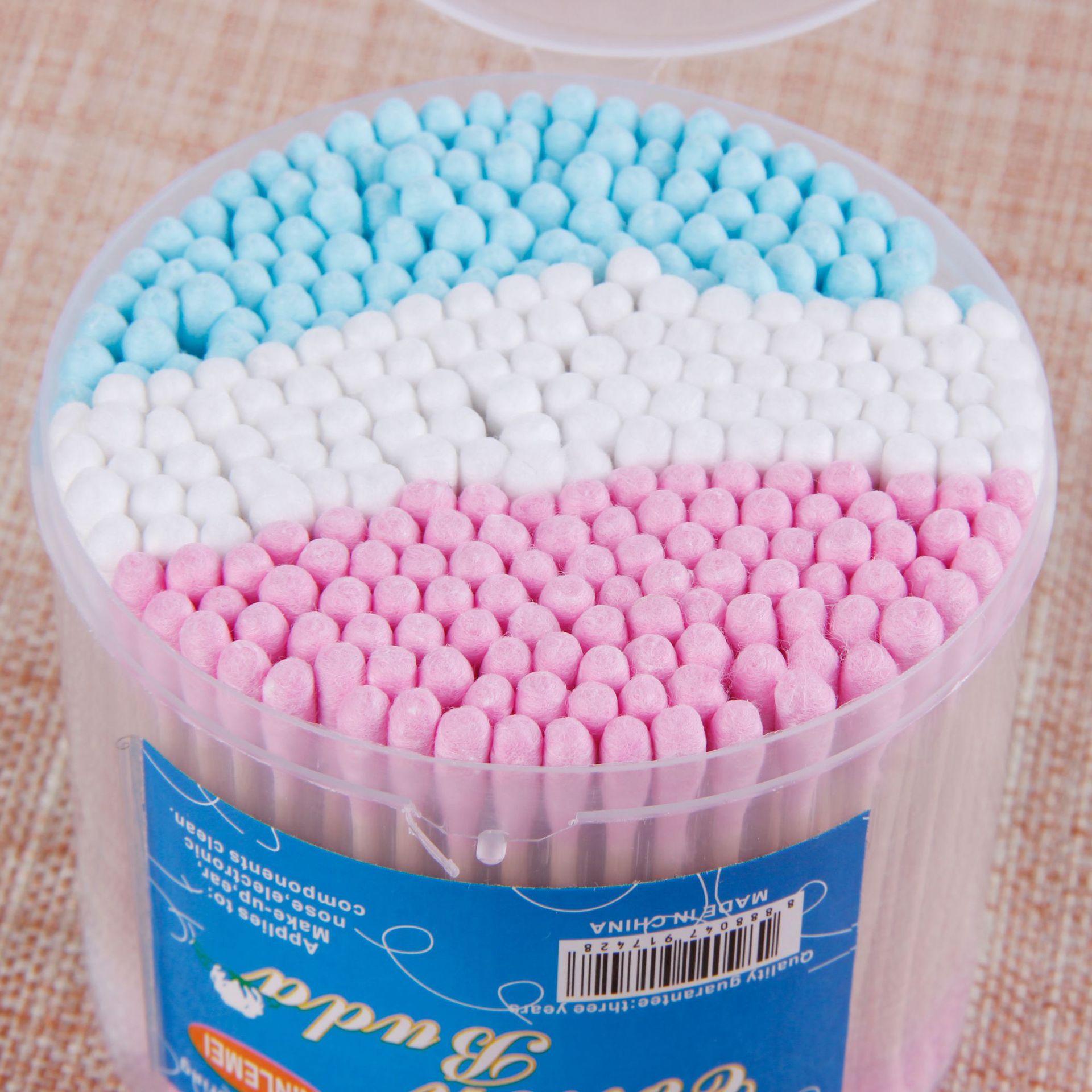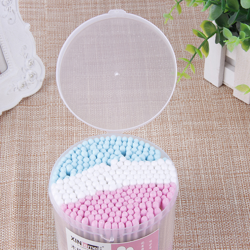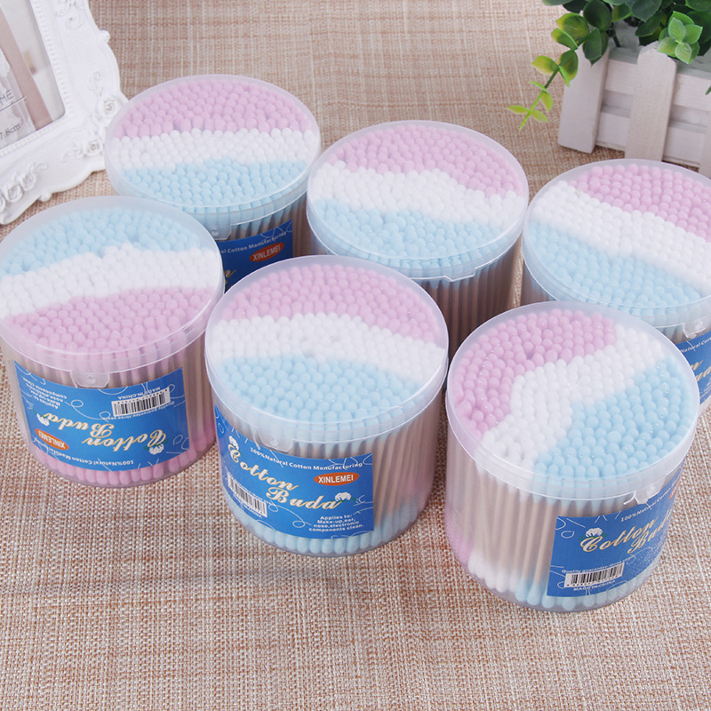 [Xinlemei] Color Cotton three-color round box 300 pieces color bamboo stick cotton swab disposable makeup cleaning cotton swab
