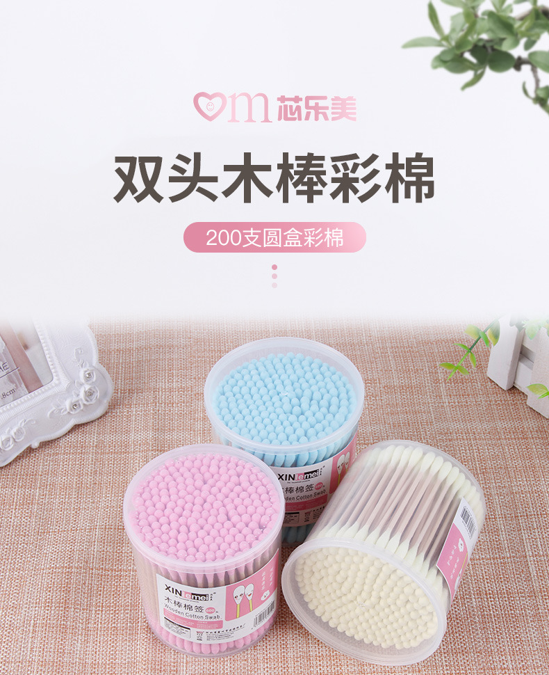[Xinlemei] factory once bamboo stick cotton swab beauty makeup cotton color cleaning makeup cotton stick 200 PCs/box